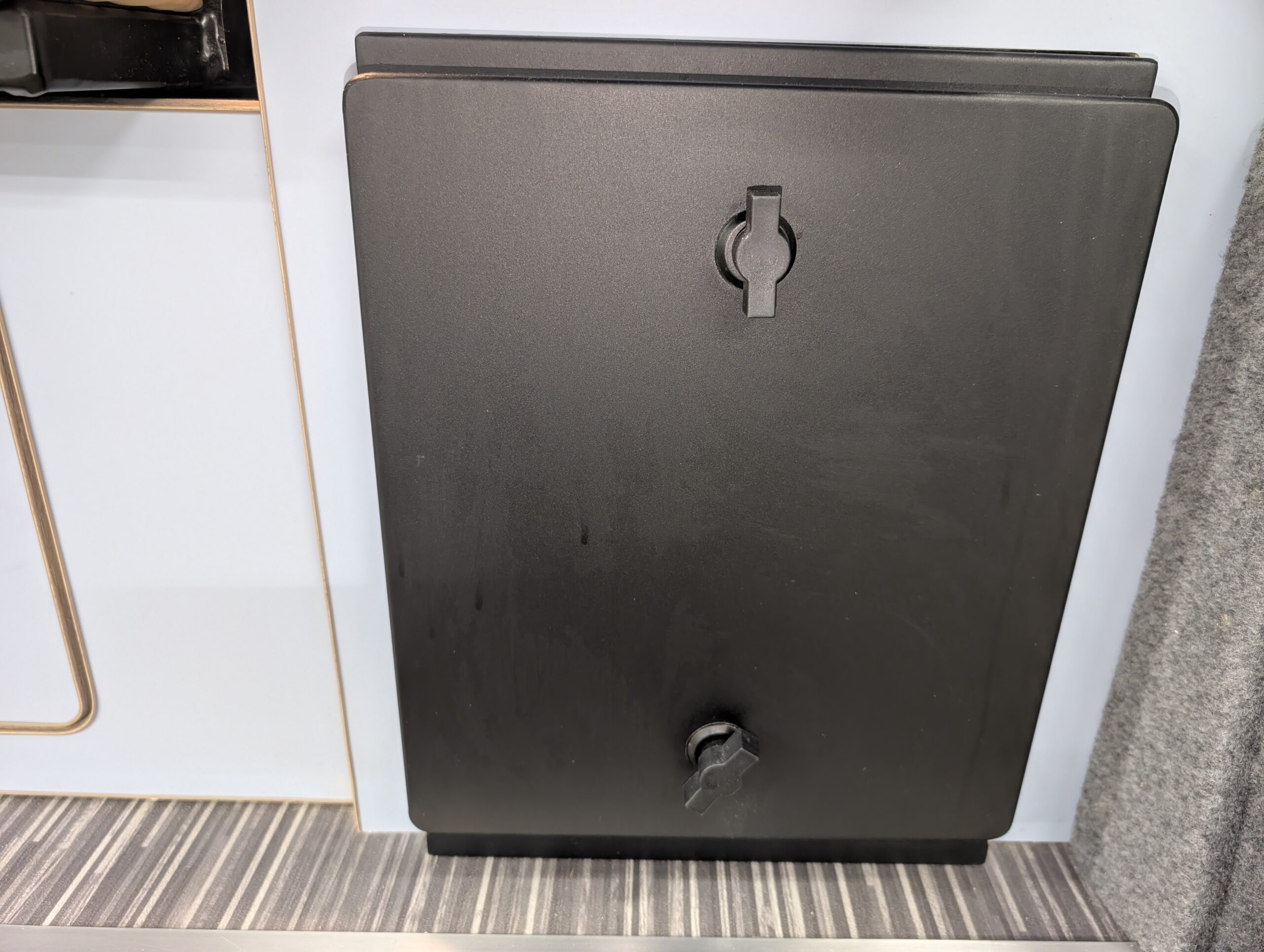 Cupboard under sink and further storage under the seat