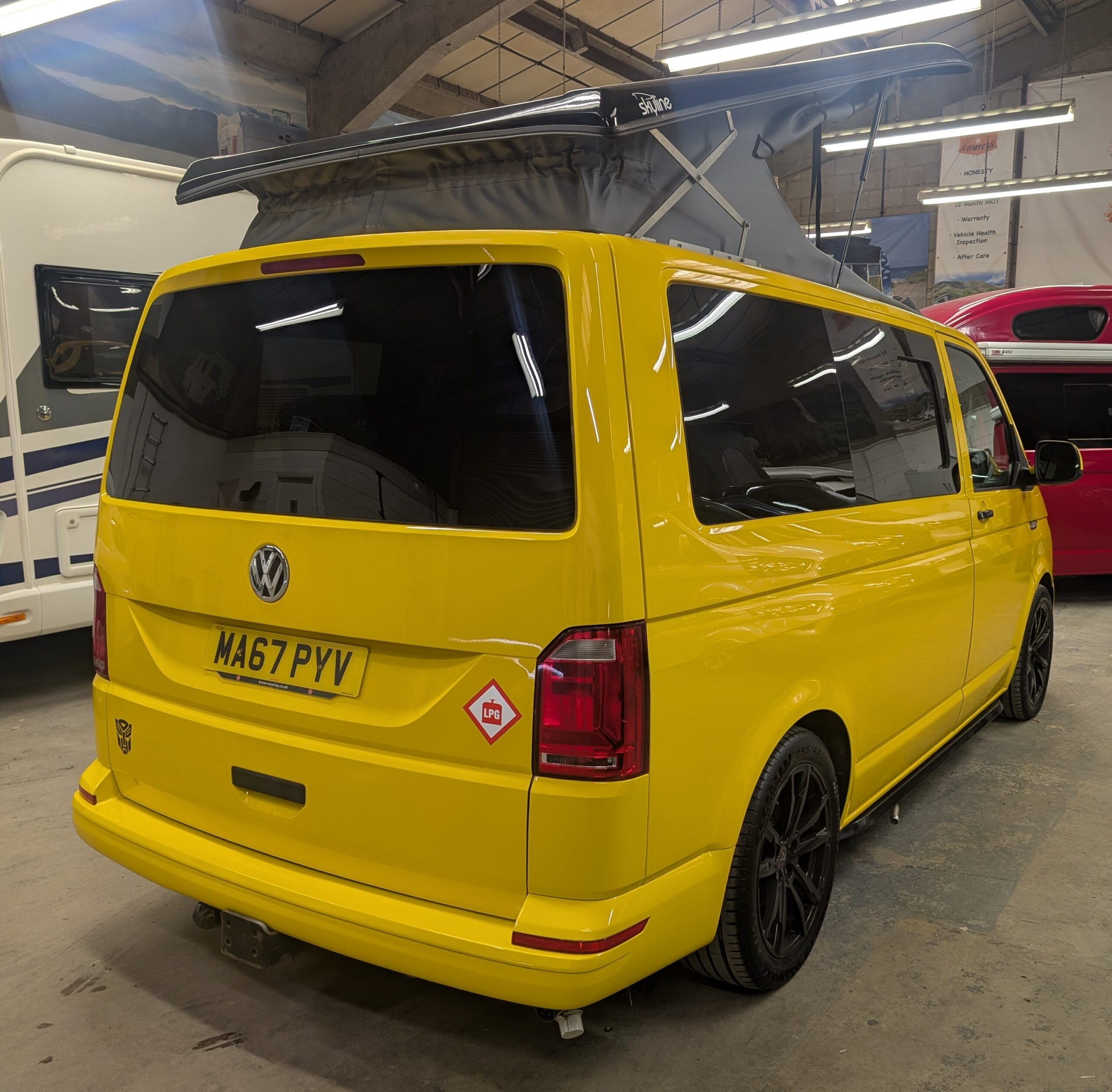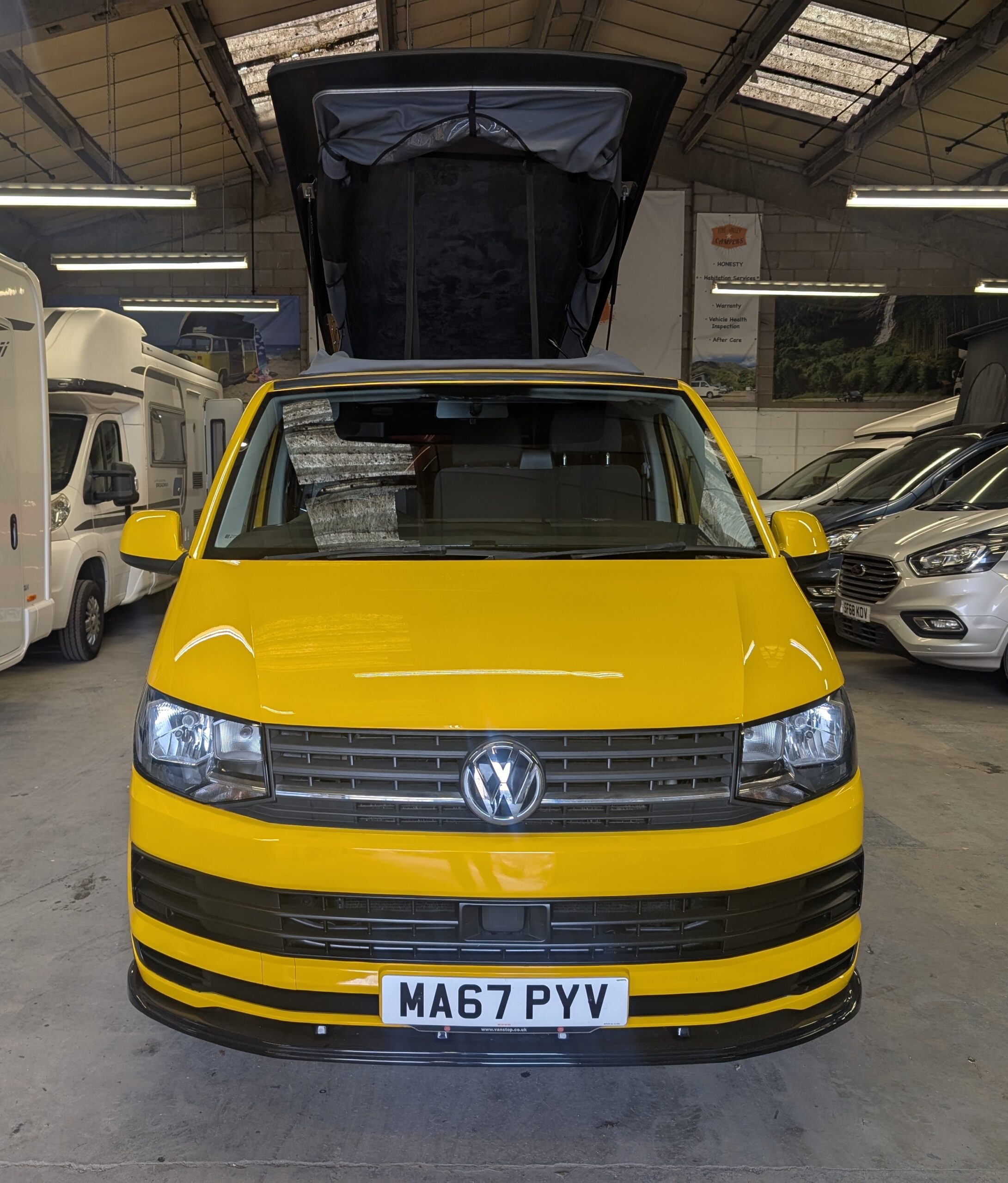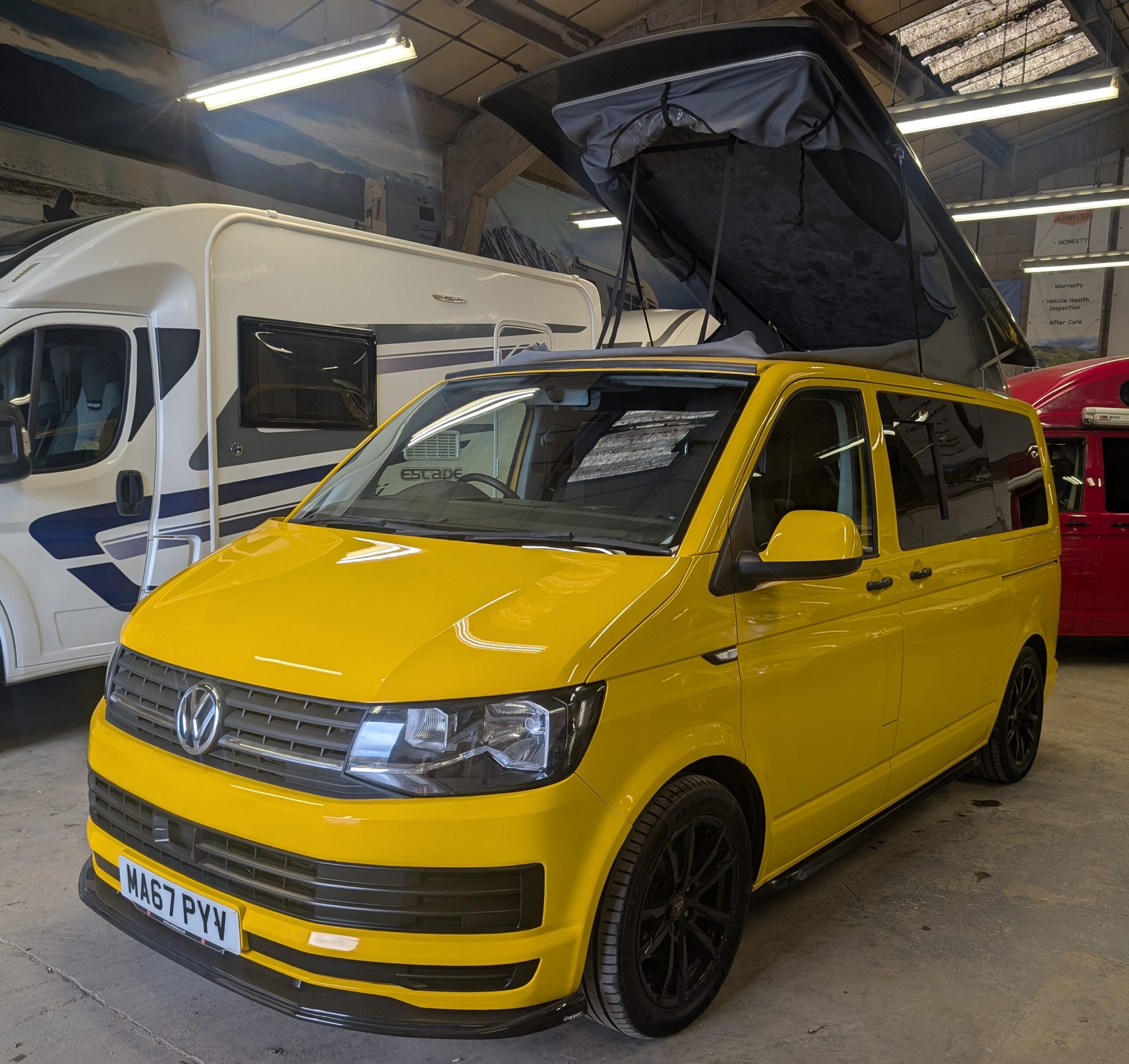 Once sold, all campers/motorhomes will go through an independent workshop and have a new 12 months MOT carried out. We don’t send any vehicles out with advisories either. We also have a service carried out and the vehicle will be serviced with everything it needs, i.e Cambelt, water pump, clutch…anything it needs.