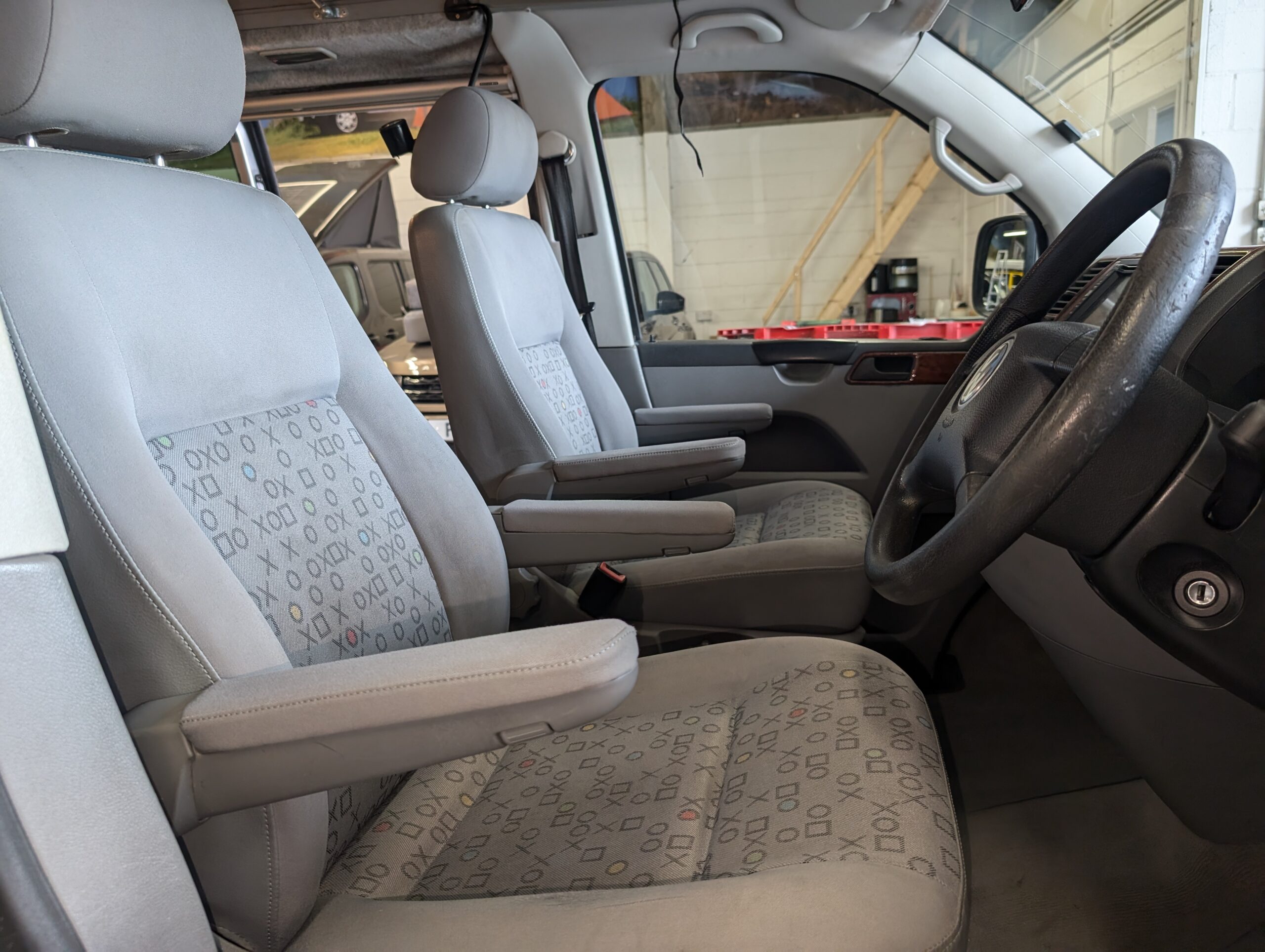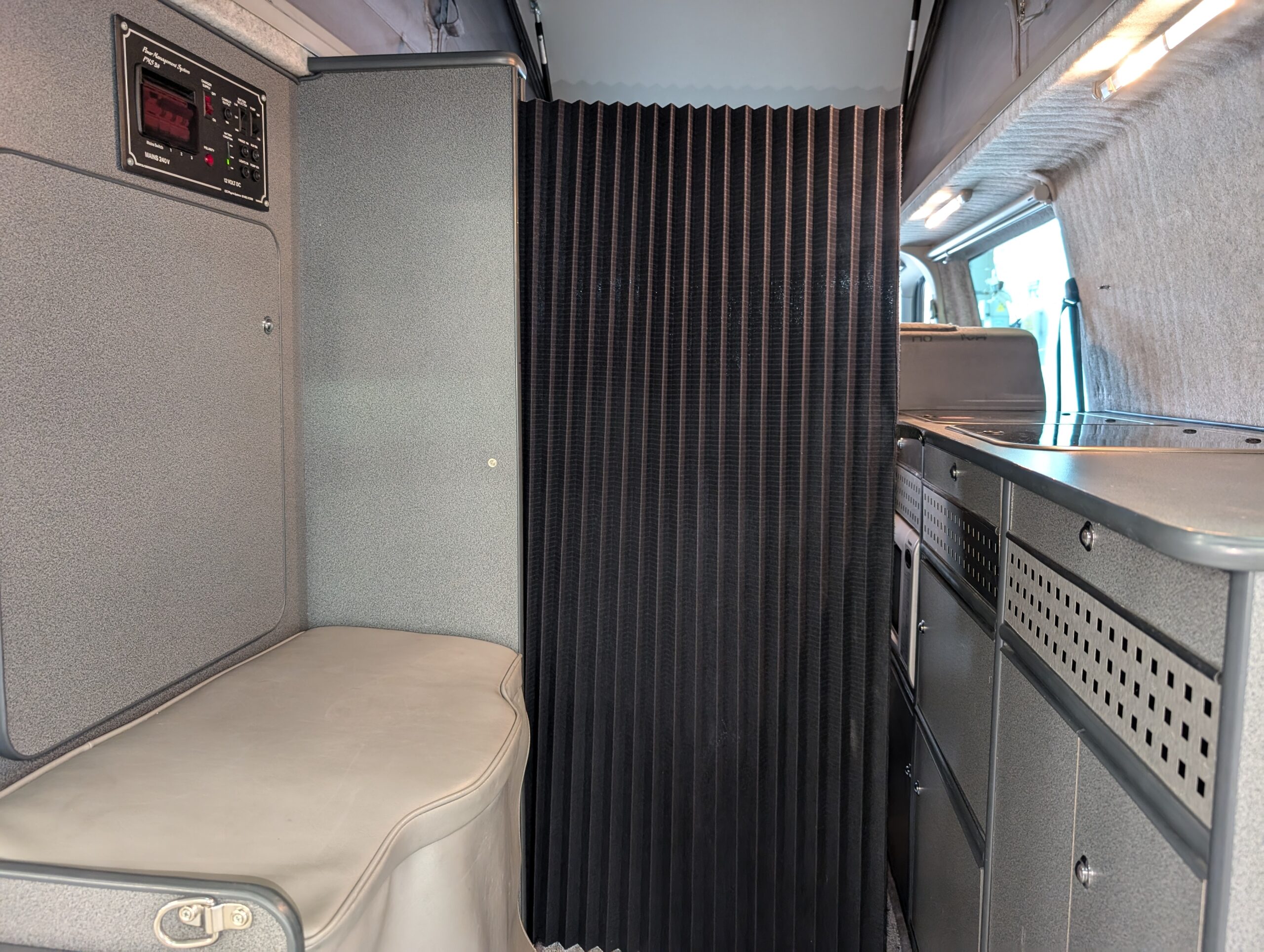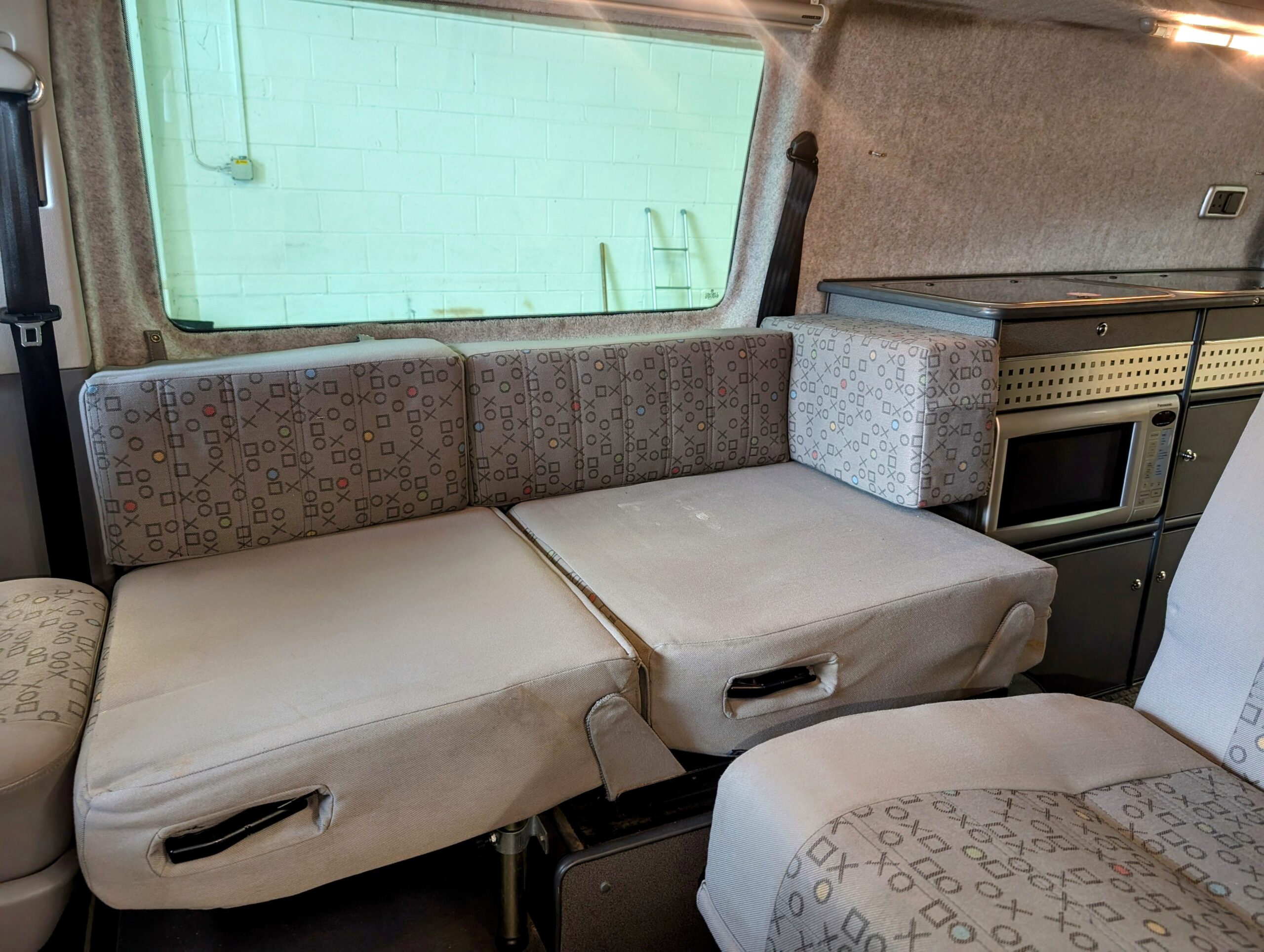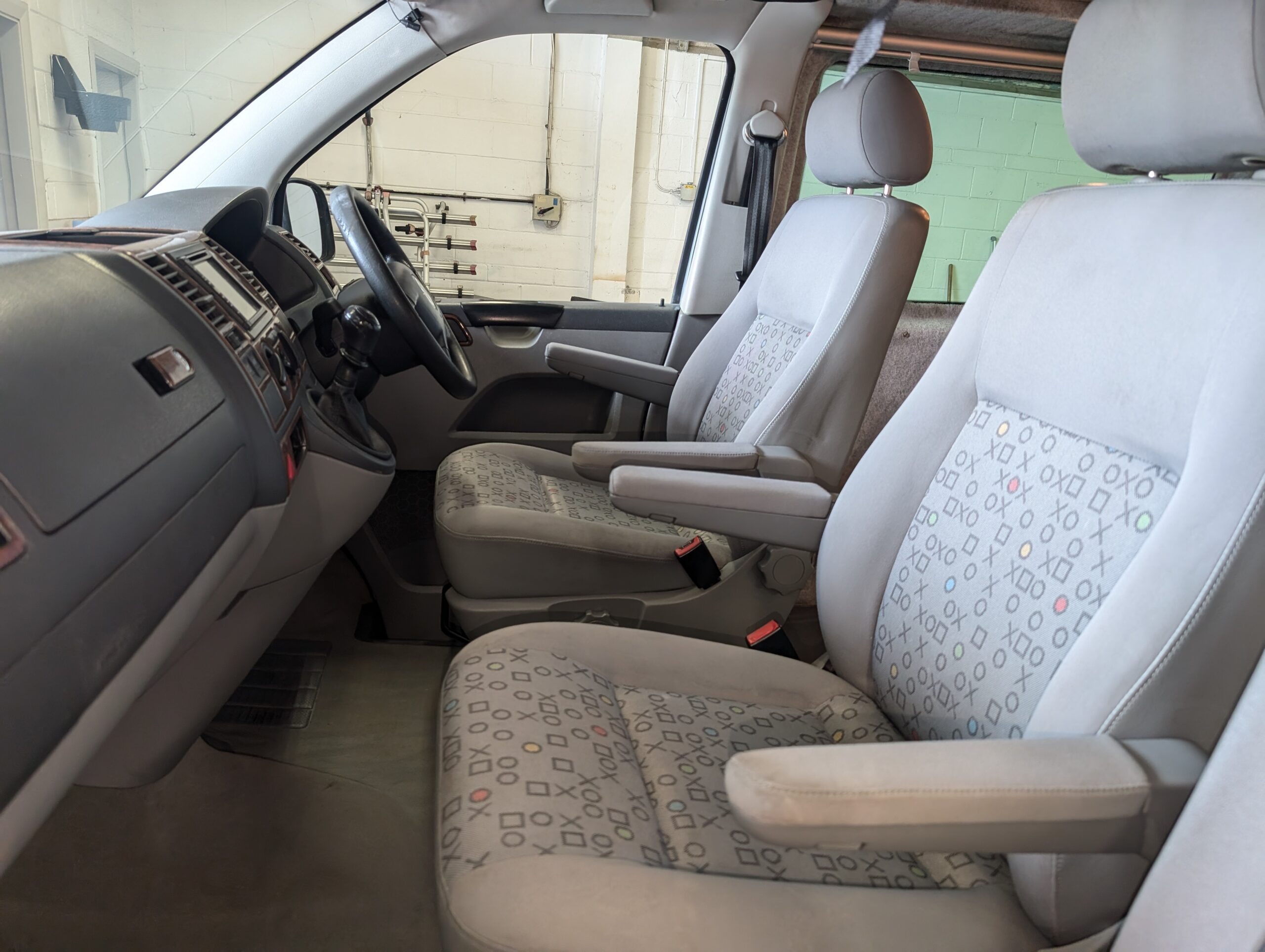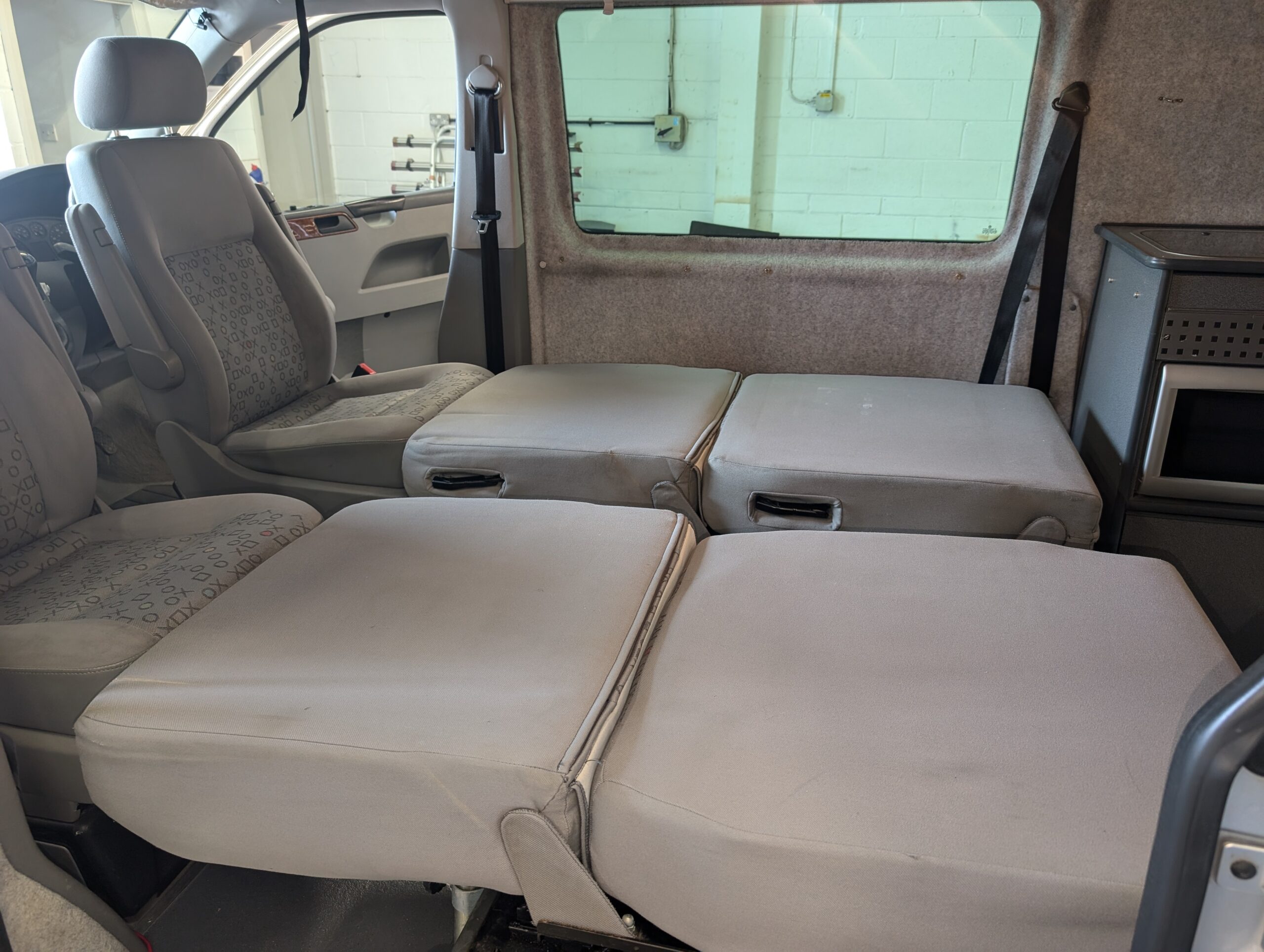 The layout gives you the option of sleeping as two single beds incorporating the front seats