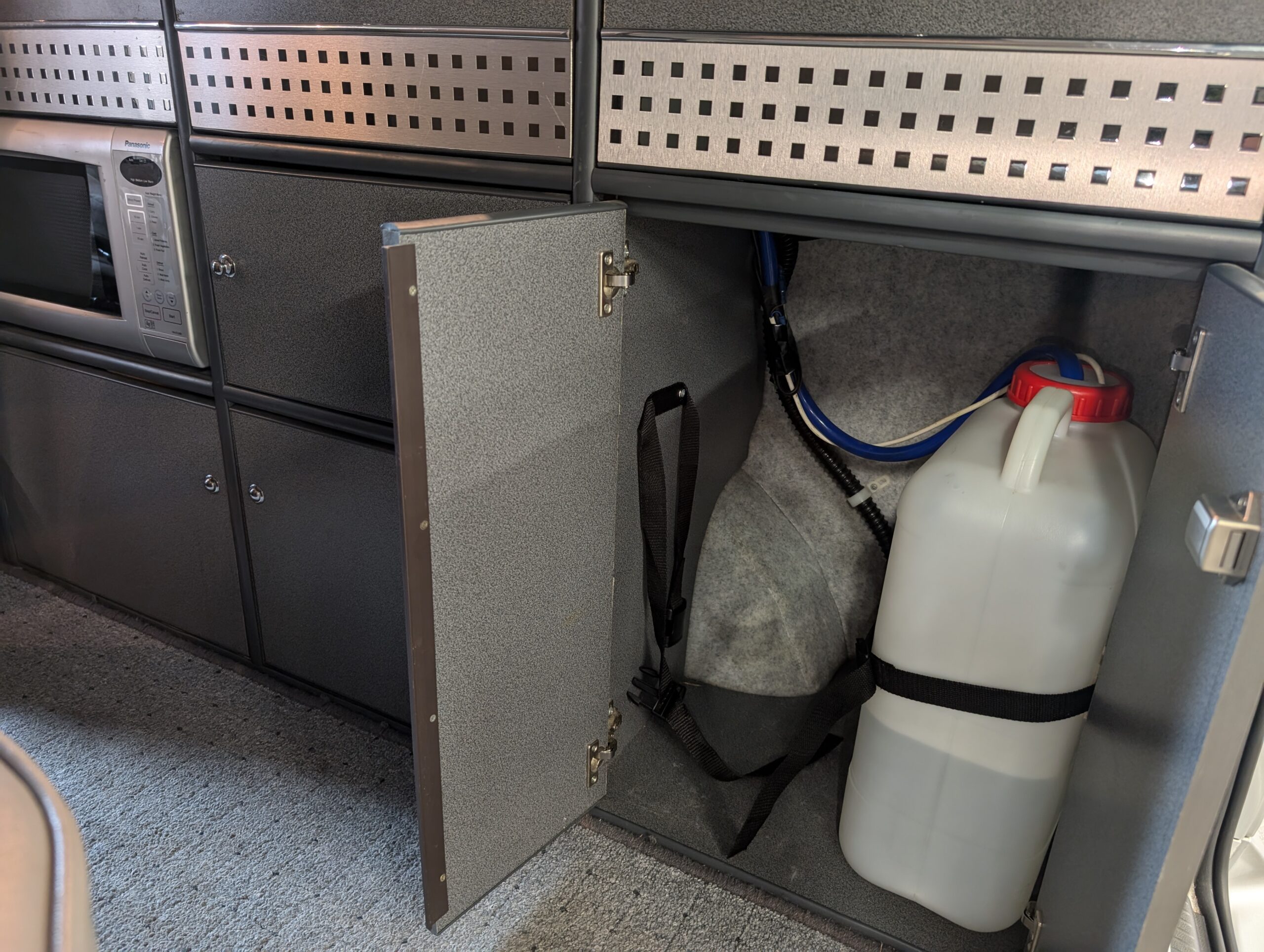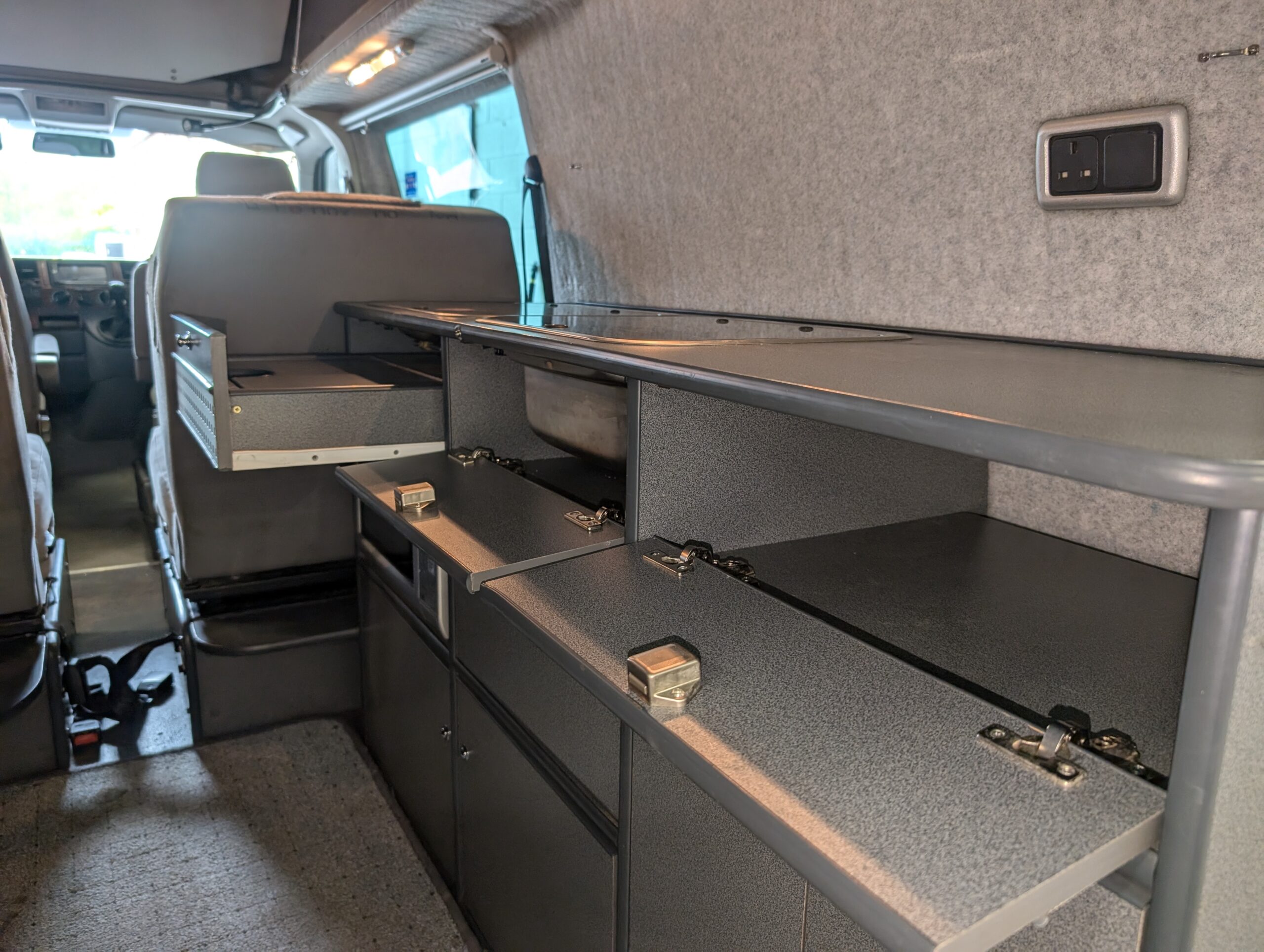 Behind the seats is a full run of units with excellent storage solutions