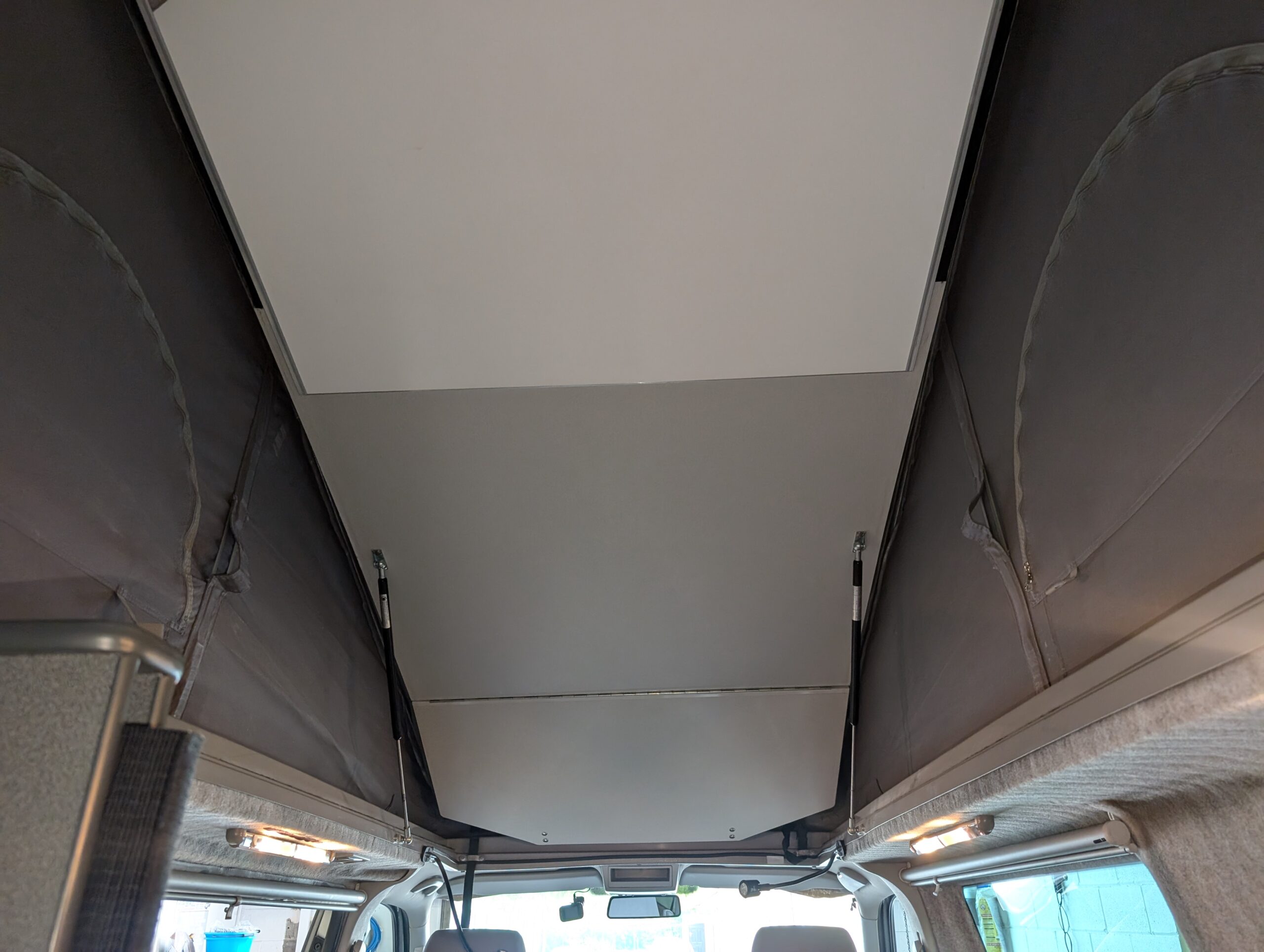 Huge low profile rear elevating pop-top roof that sleeps two people upstairs