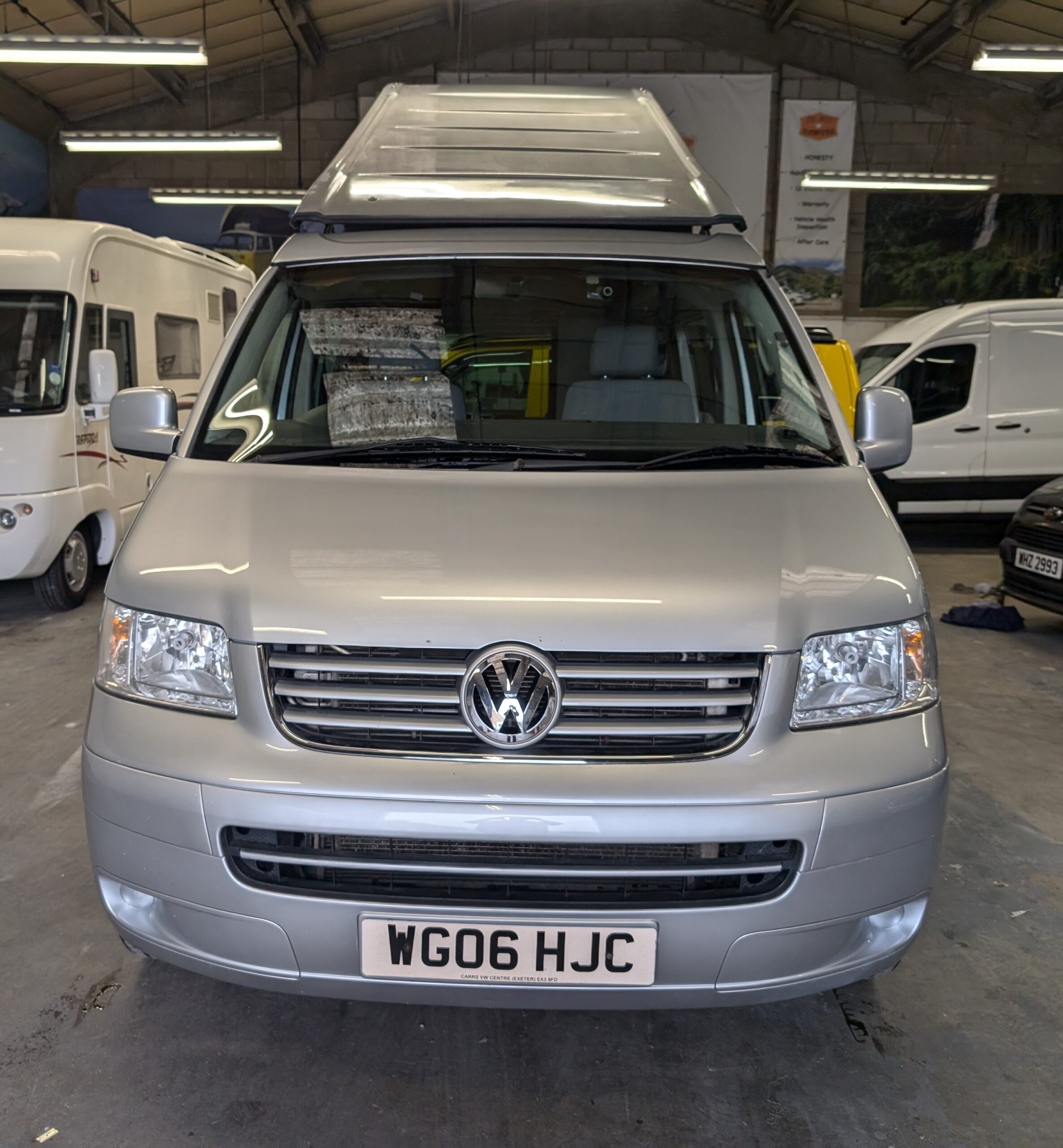 Once sold, all campers/motorhomes will go through an independent workshop and have a new 12 months MOT carried out. We don’t send any vehicles out with advisories either. We also have a service carried out and the vehicle will be serviced with everything it needs, i.e Cambelt, water pump, clutch…anything it needs.
