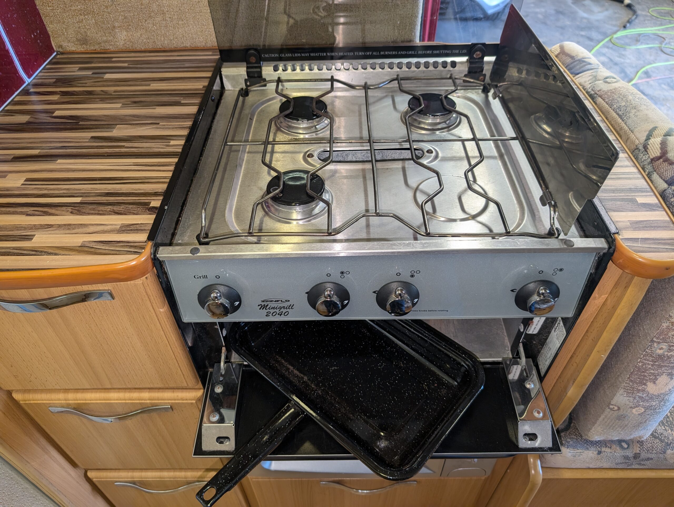 It has 240v hook up, 12v leisure battery and takes a gas bottle