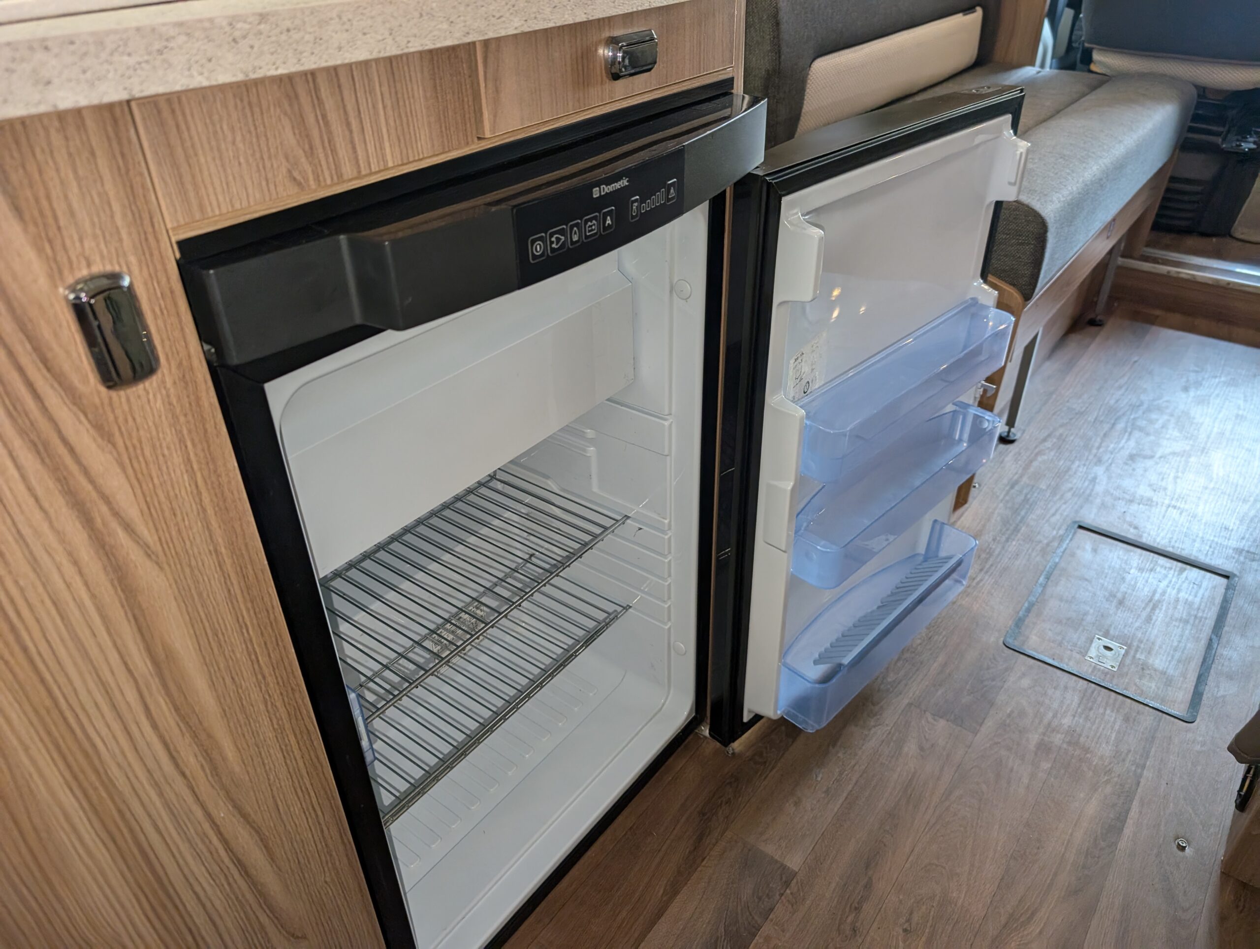 Three way fridge with freezer compartment