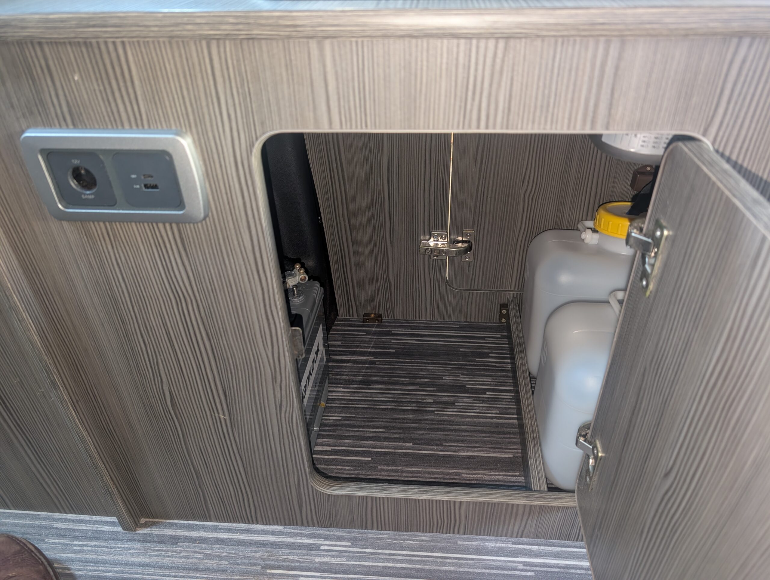 At the end of the bed section is a cupboard to house a Porta Potti toilet