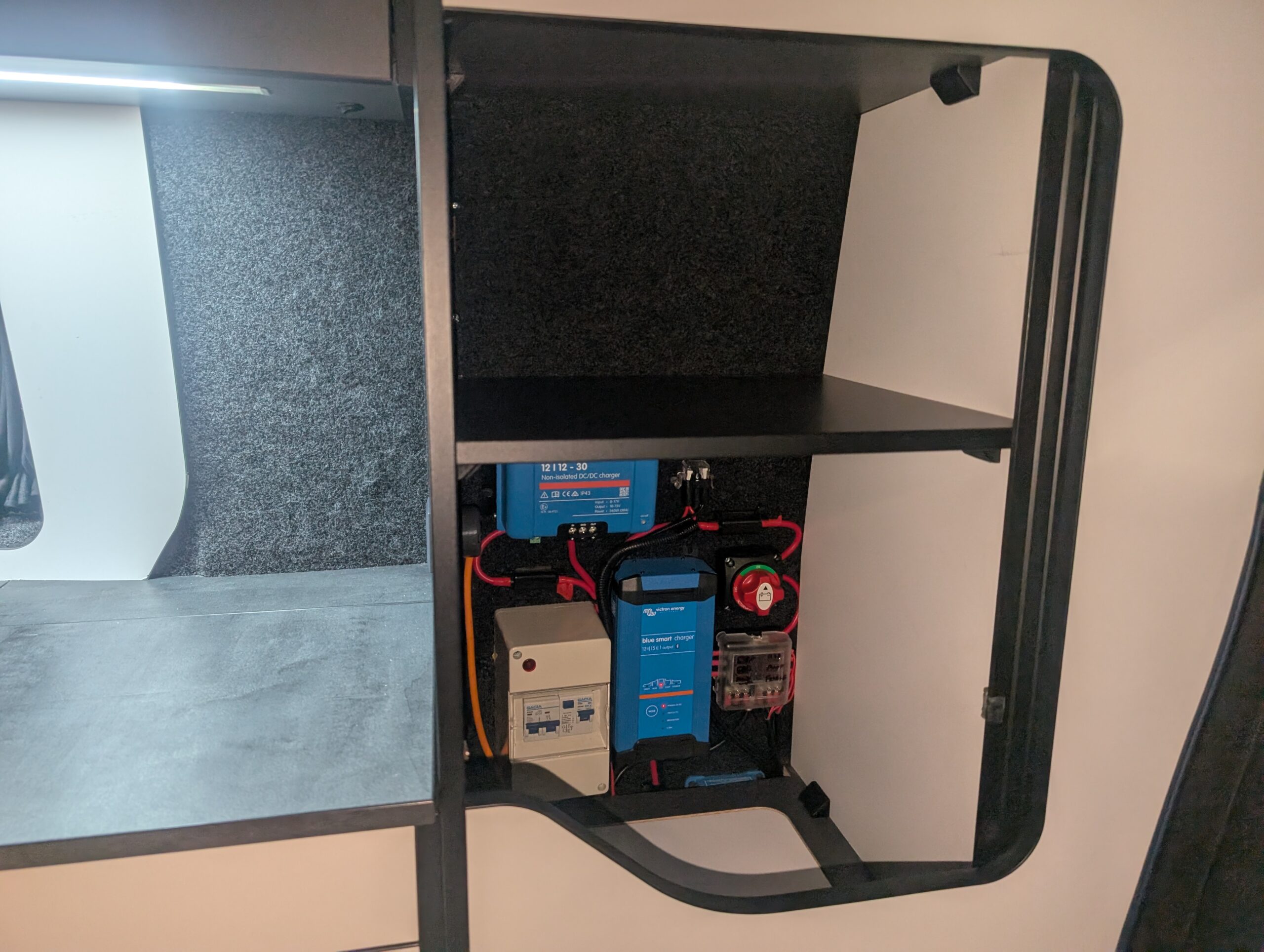 It has 240v hook up, 12v leisure battery and takes a gas bottle