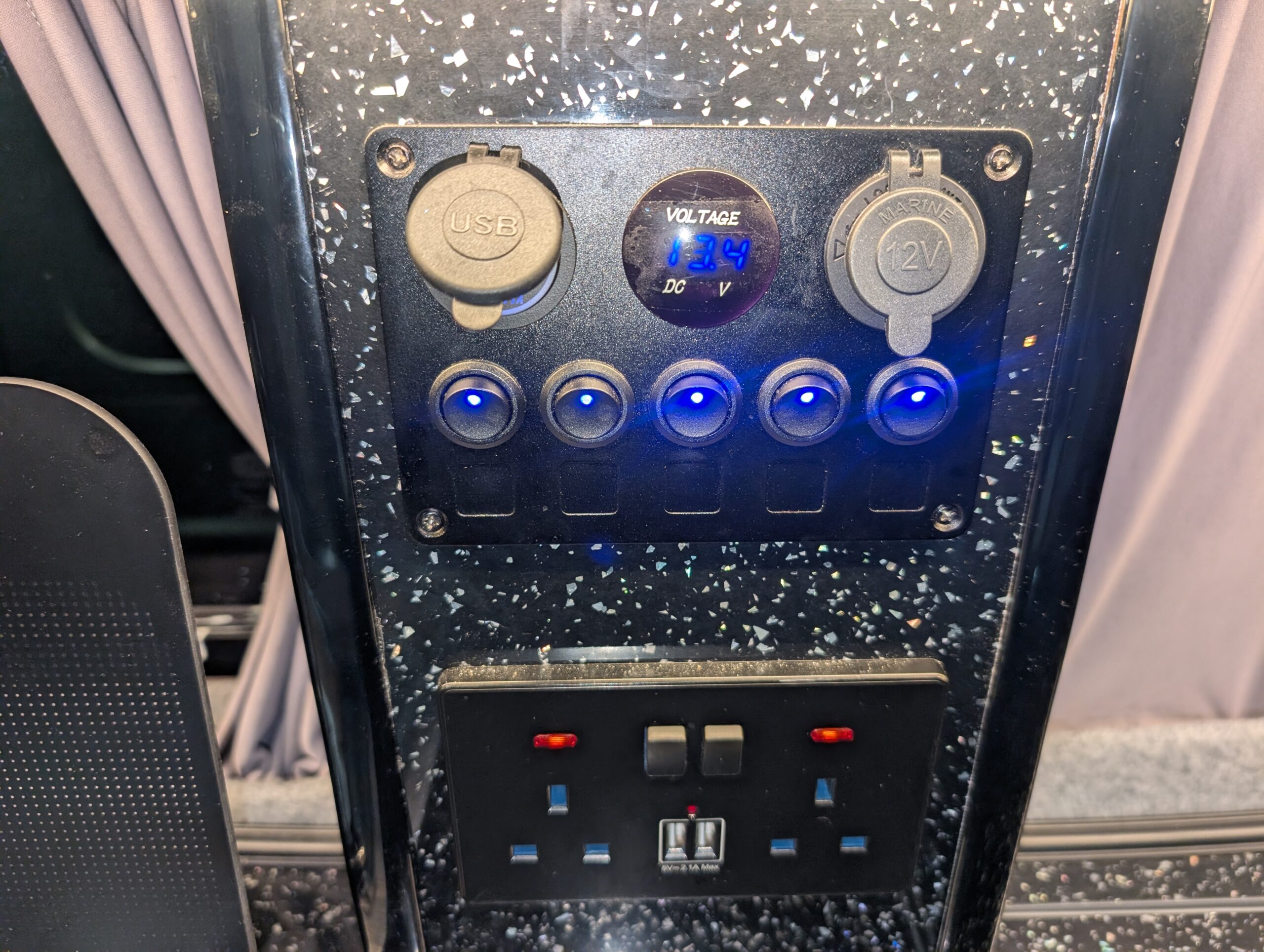 It has 240v hook up, 12v leisure battery and takes a gas bottle