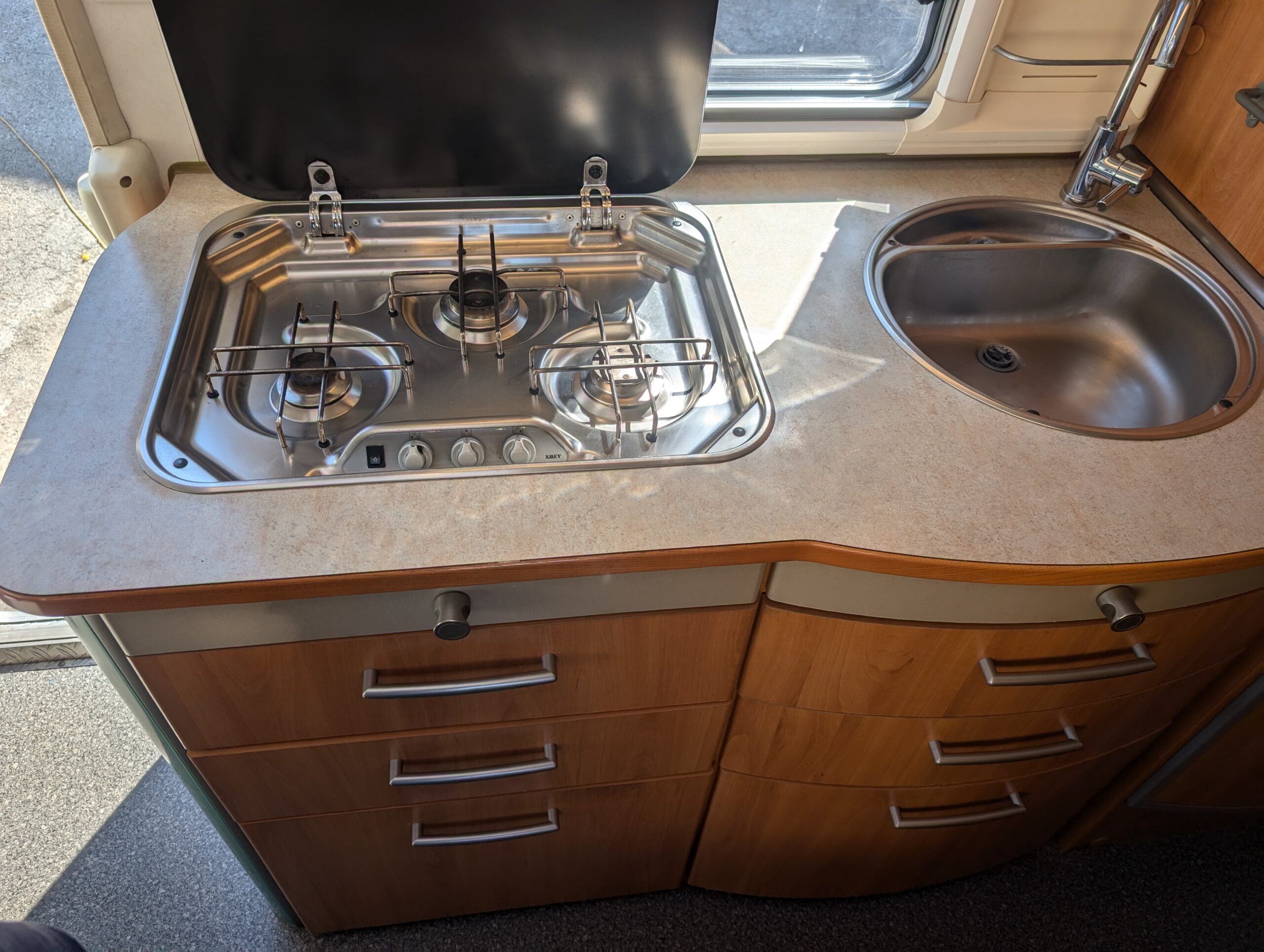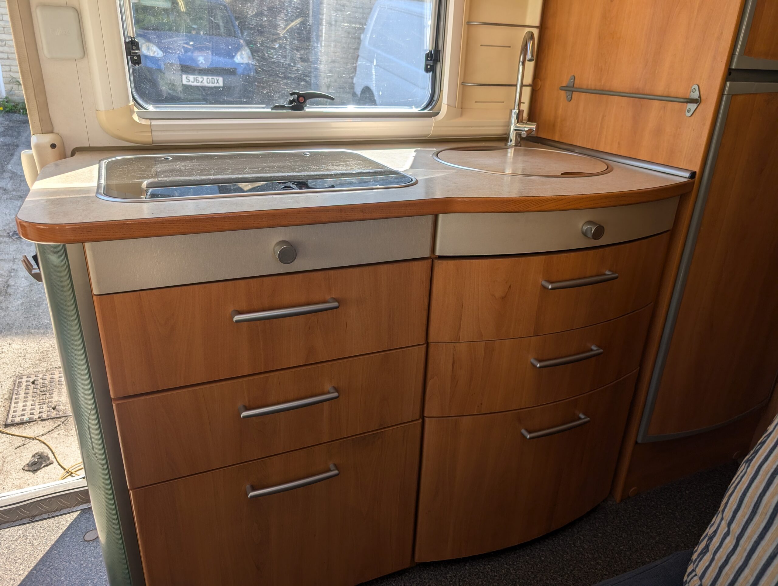 Excellent quality cabinets and fixings all round, typical in any Hymer