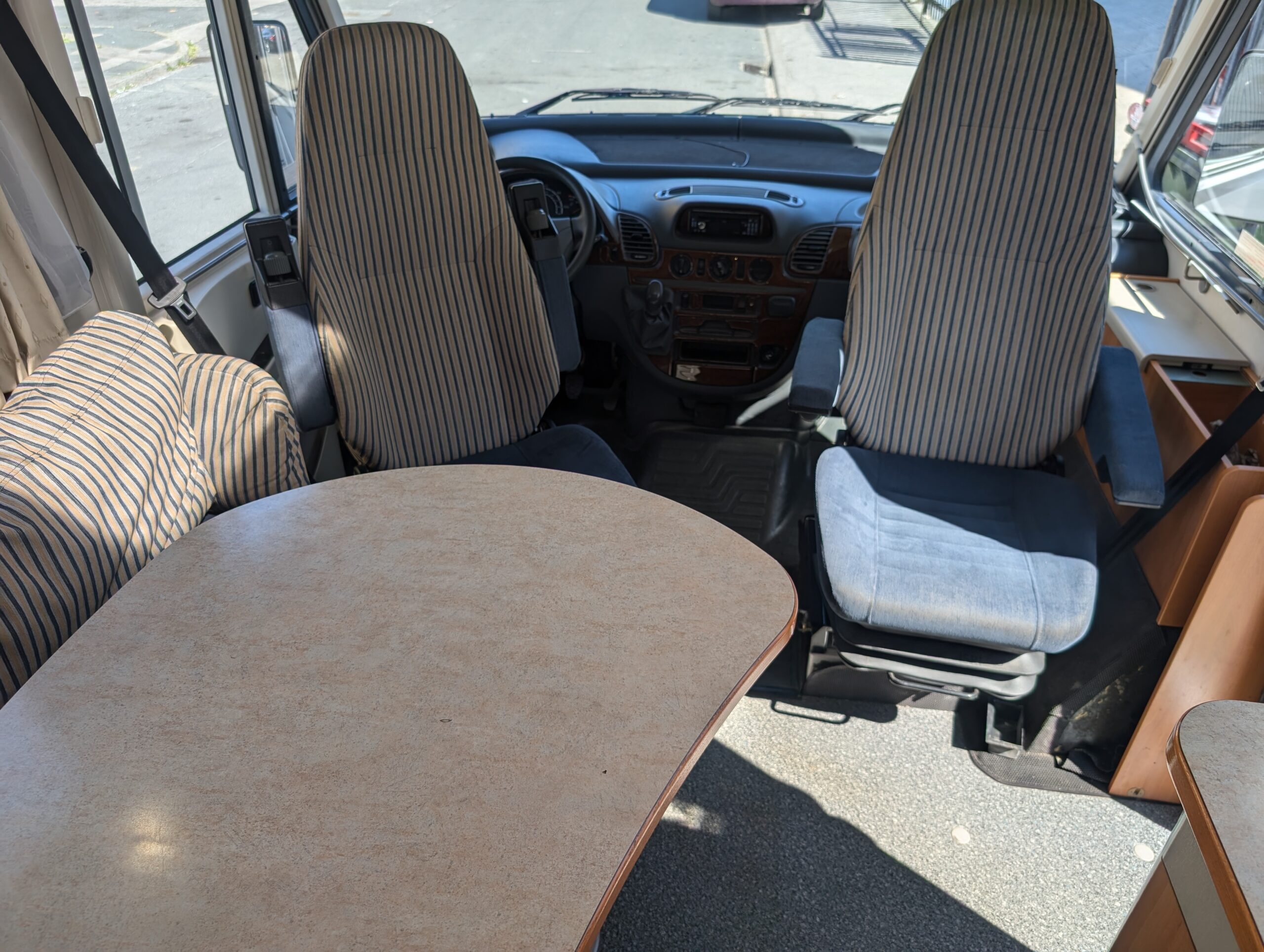 The forward lounge/dining area has a nice comfortable seating area with an adjustable table