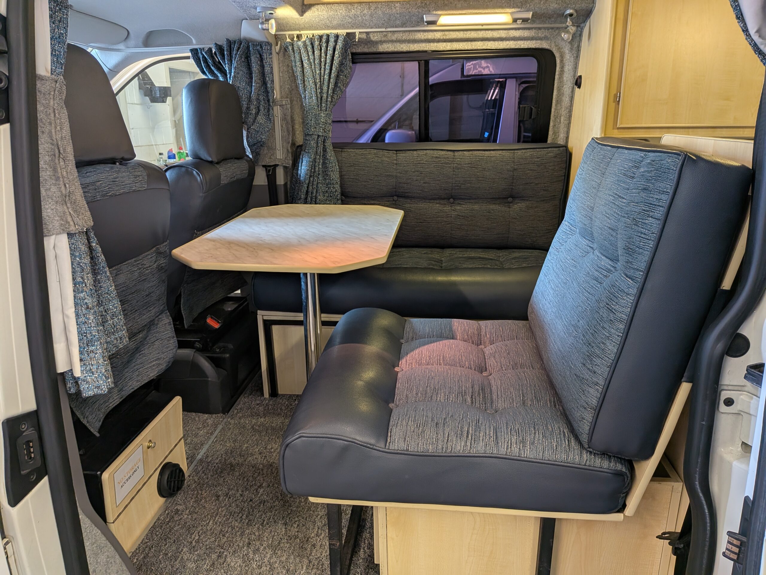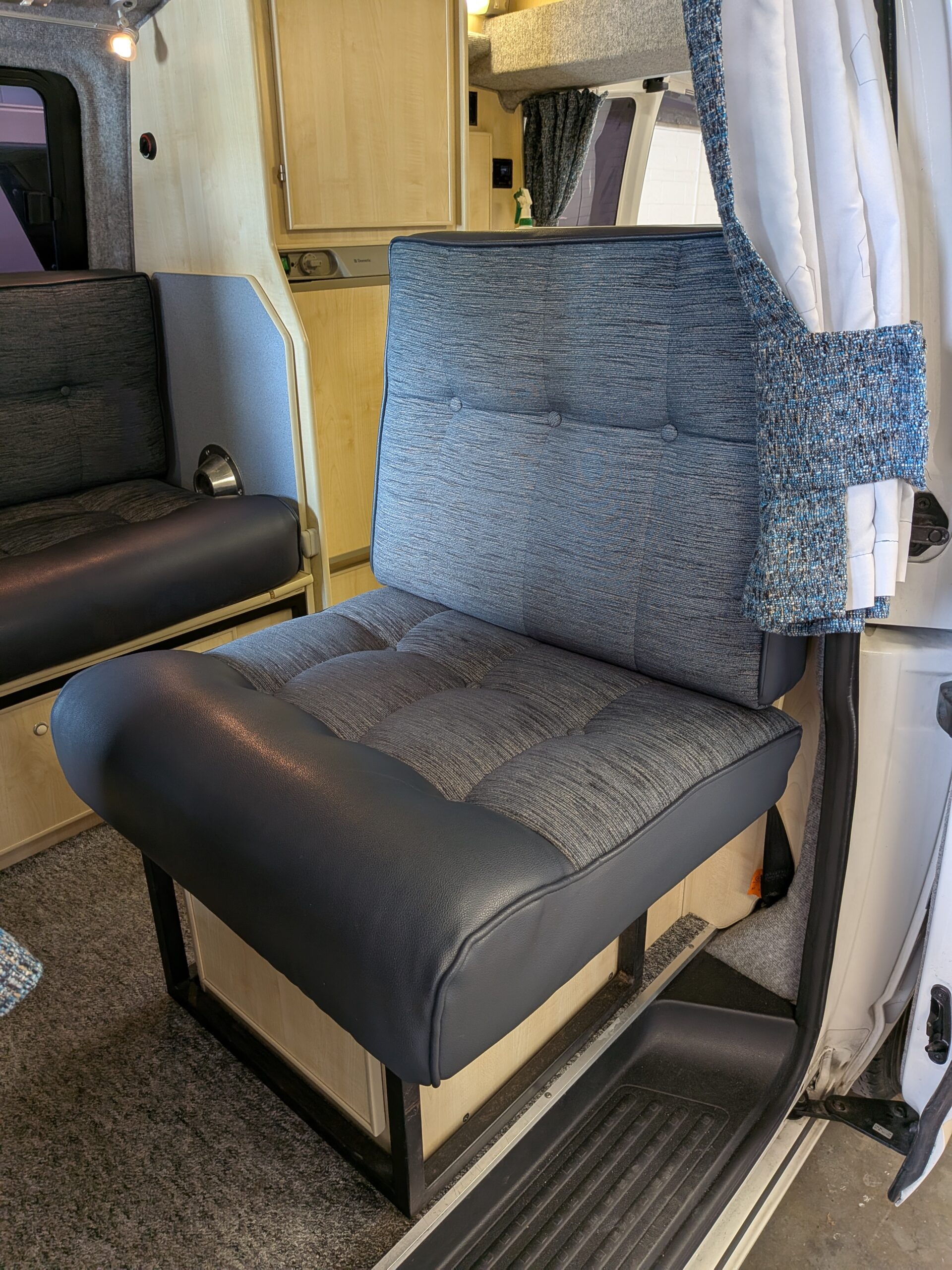The passenger seat swivels to face the rear, as does the drivers seat.