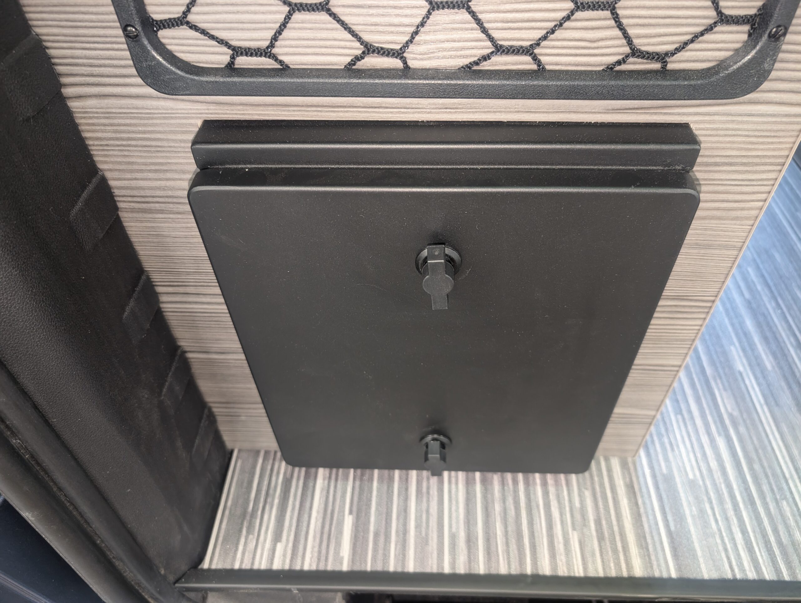 At the end of the bed section is a cupboard to house a Porta Potti 335 toilet