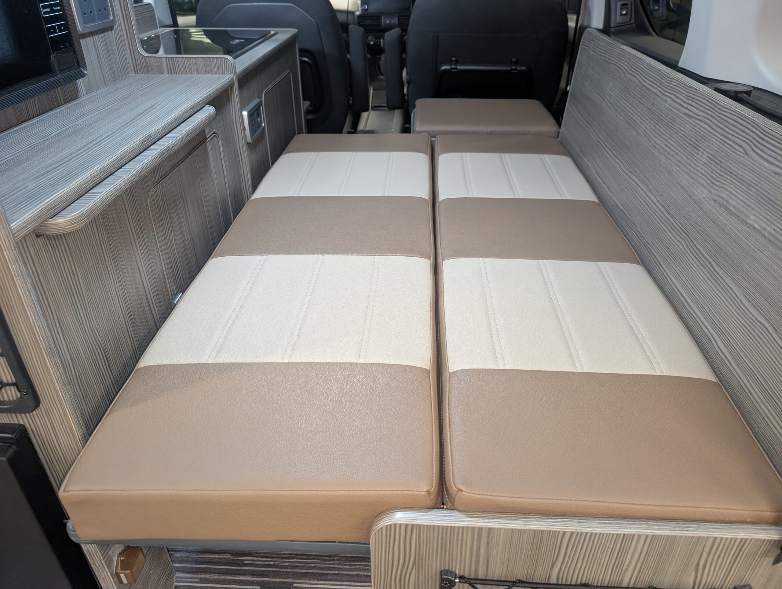 Once sold, all campers/motorhomes will go through an independent workshop and have a new 12 months MOT carried out. We don’t send any vehicles out with advisories either. We also have a service carried out and the vehicle will be serviced with everything it needs, i.e Cambelt, water pump, clutch…anything it needs.