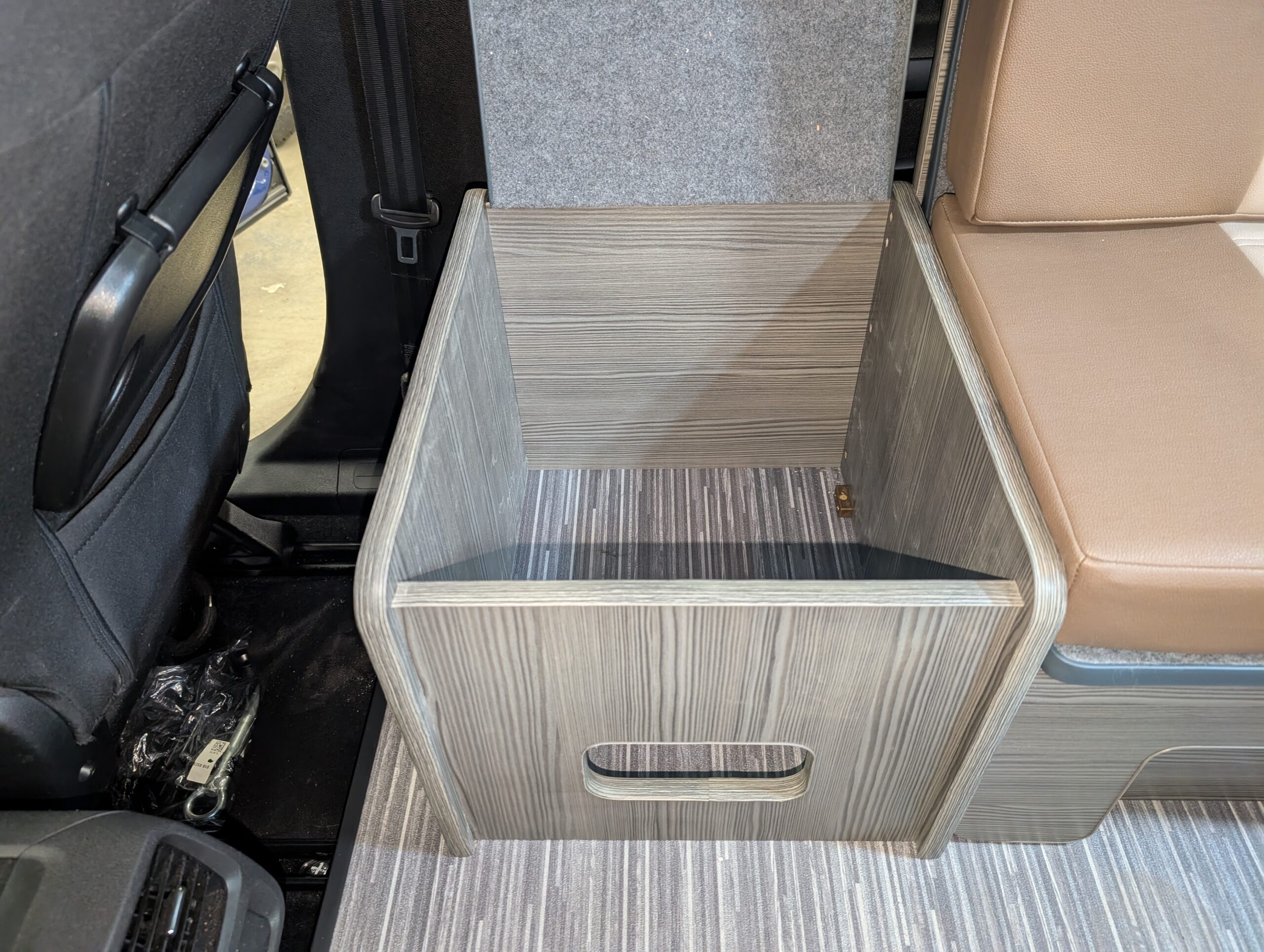 At the end of the bed section is a cupboard to house a Porta Potti toilet