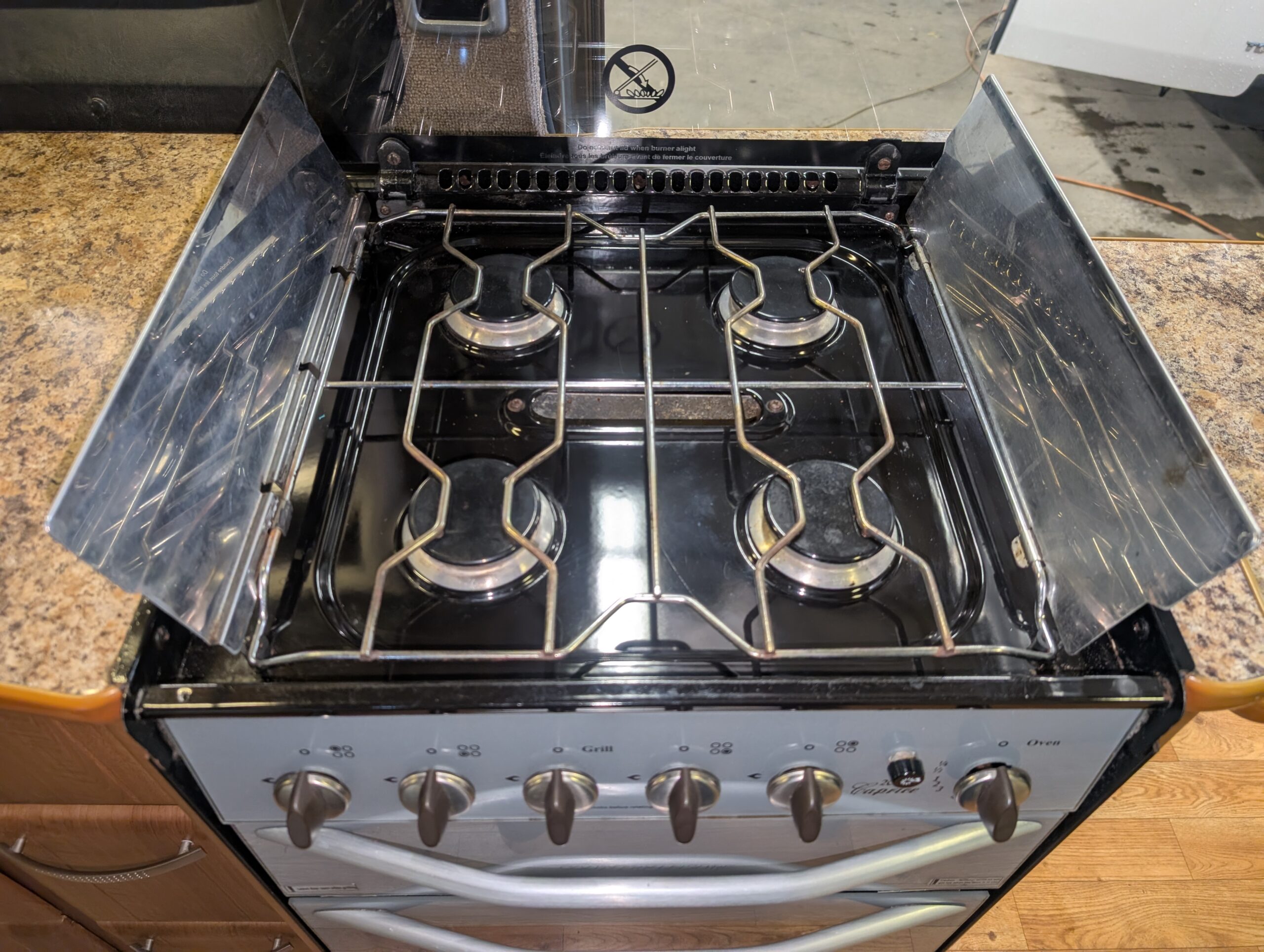It has 240v hook up, 12v leisure battery and takes a gas bottle