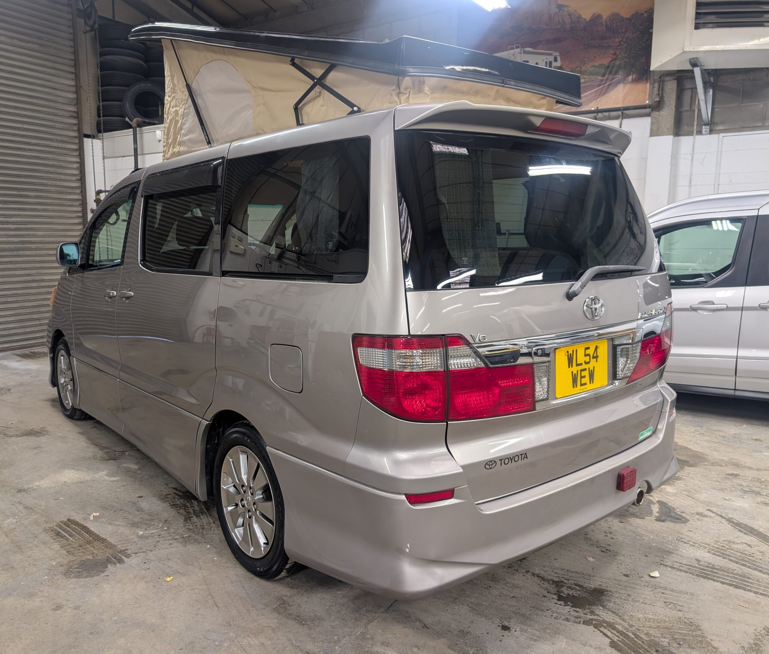 Here we have for sale a fantastic low mileage Toyota Alphard with a rear conversion and pop-top roof