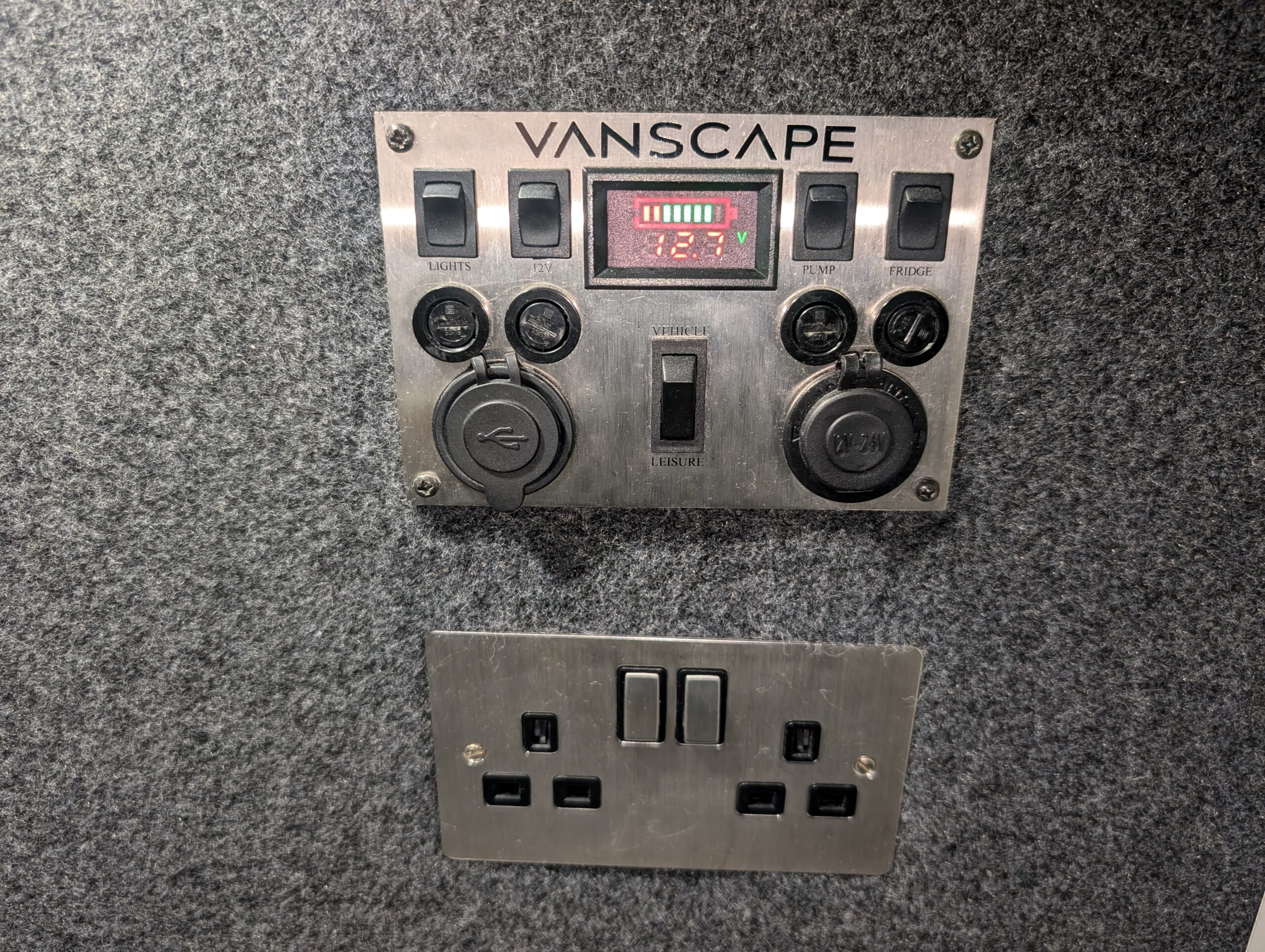 It has 240v hook up, 12v leisure battery and takes a gas bottle