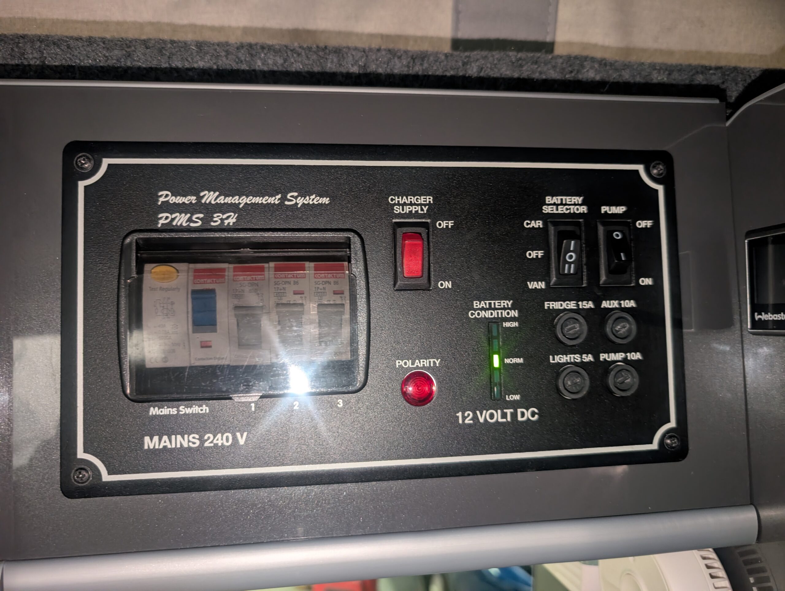 Internal 12V and 230V sockets