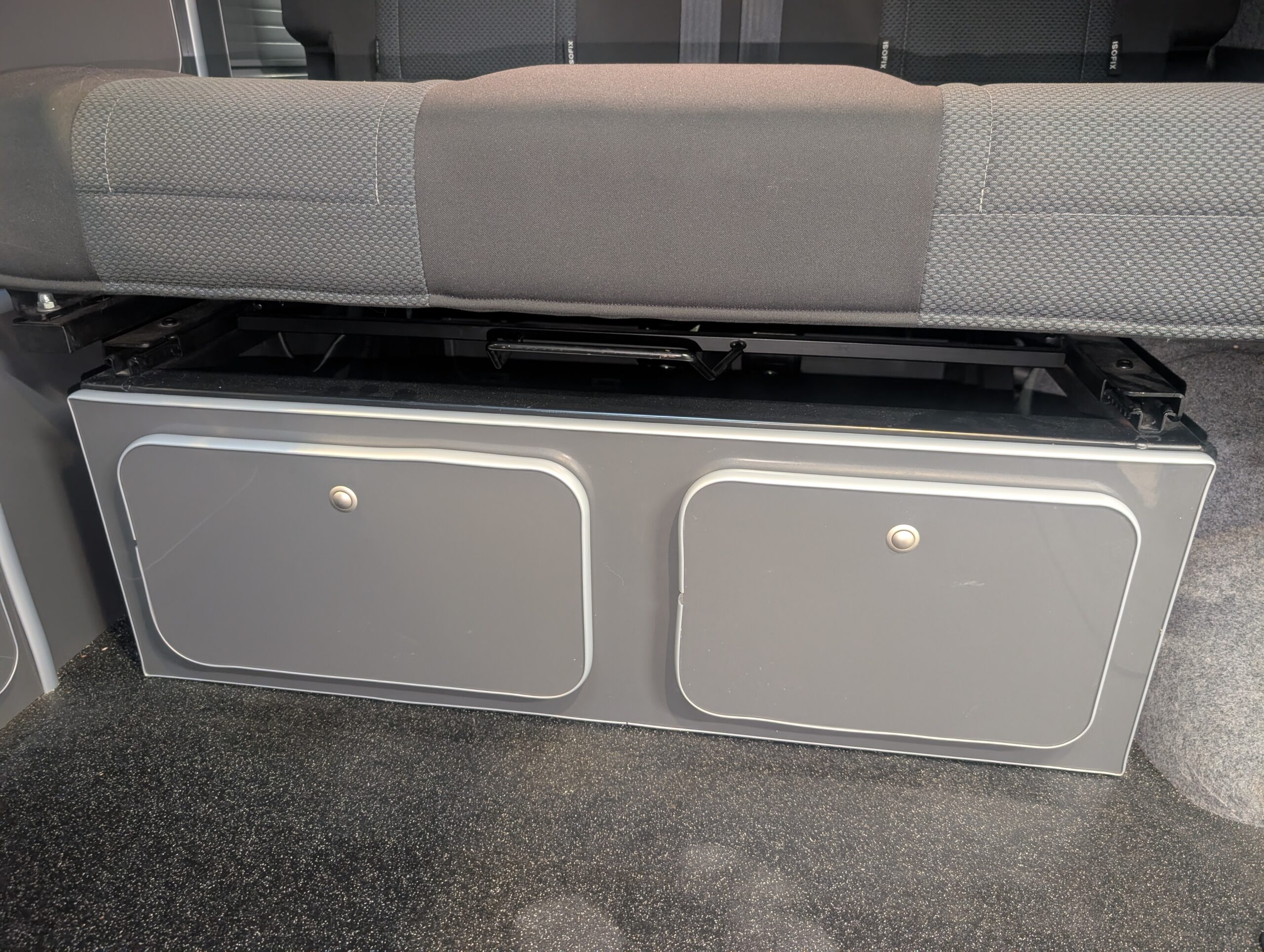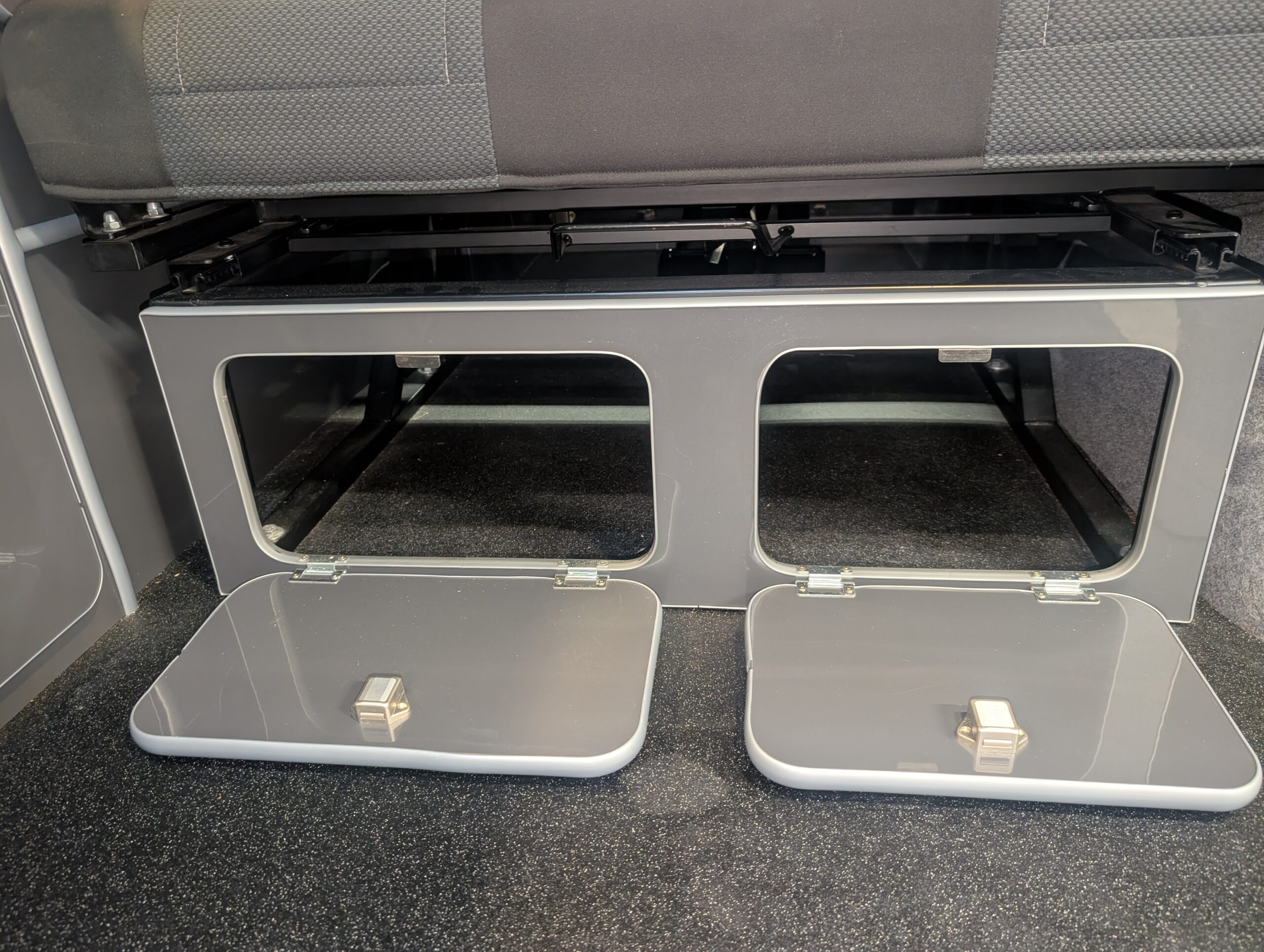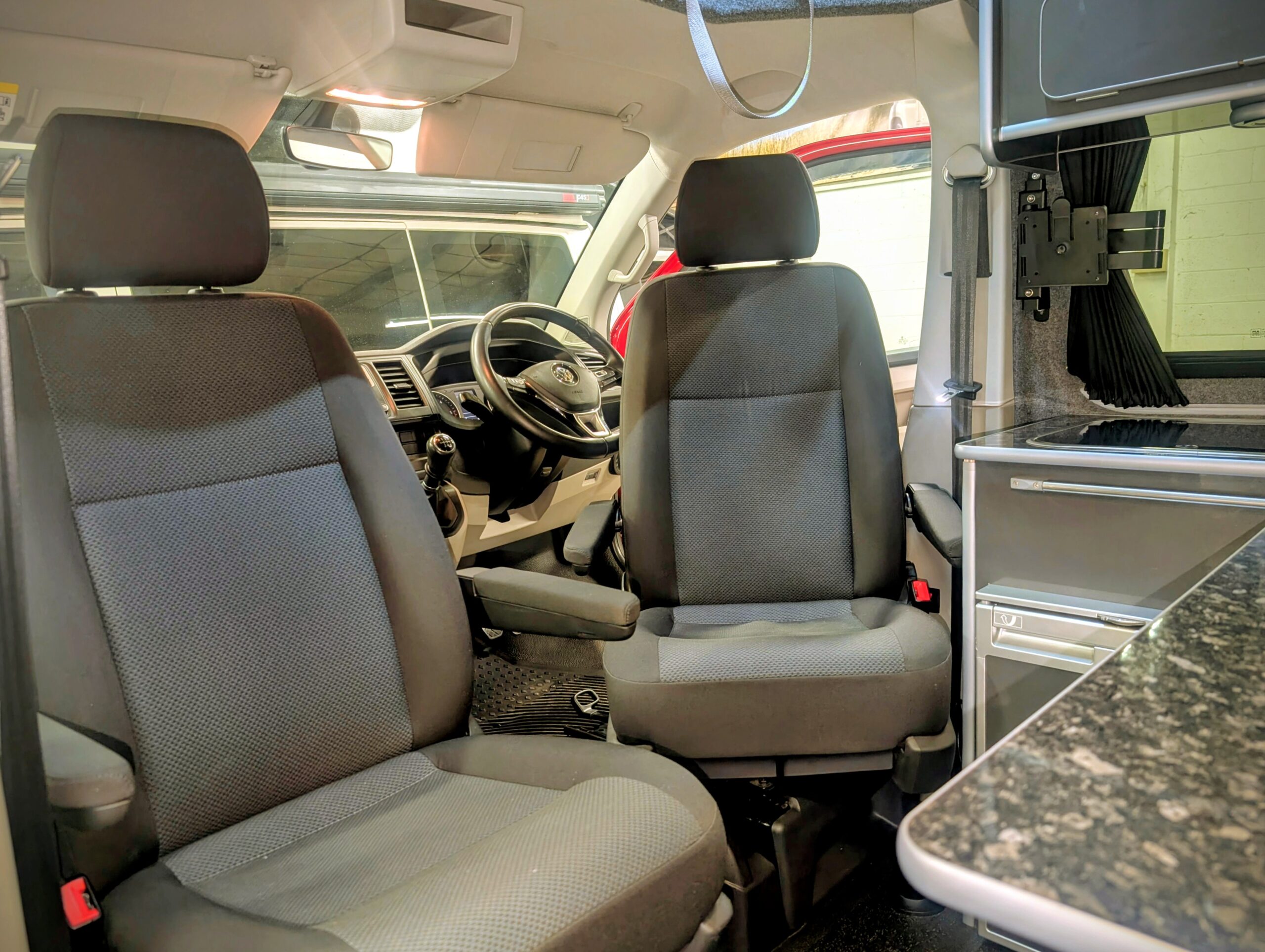 The driver and passenger seats swivel to face the rear