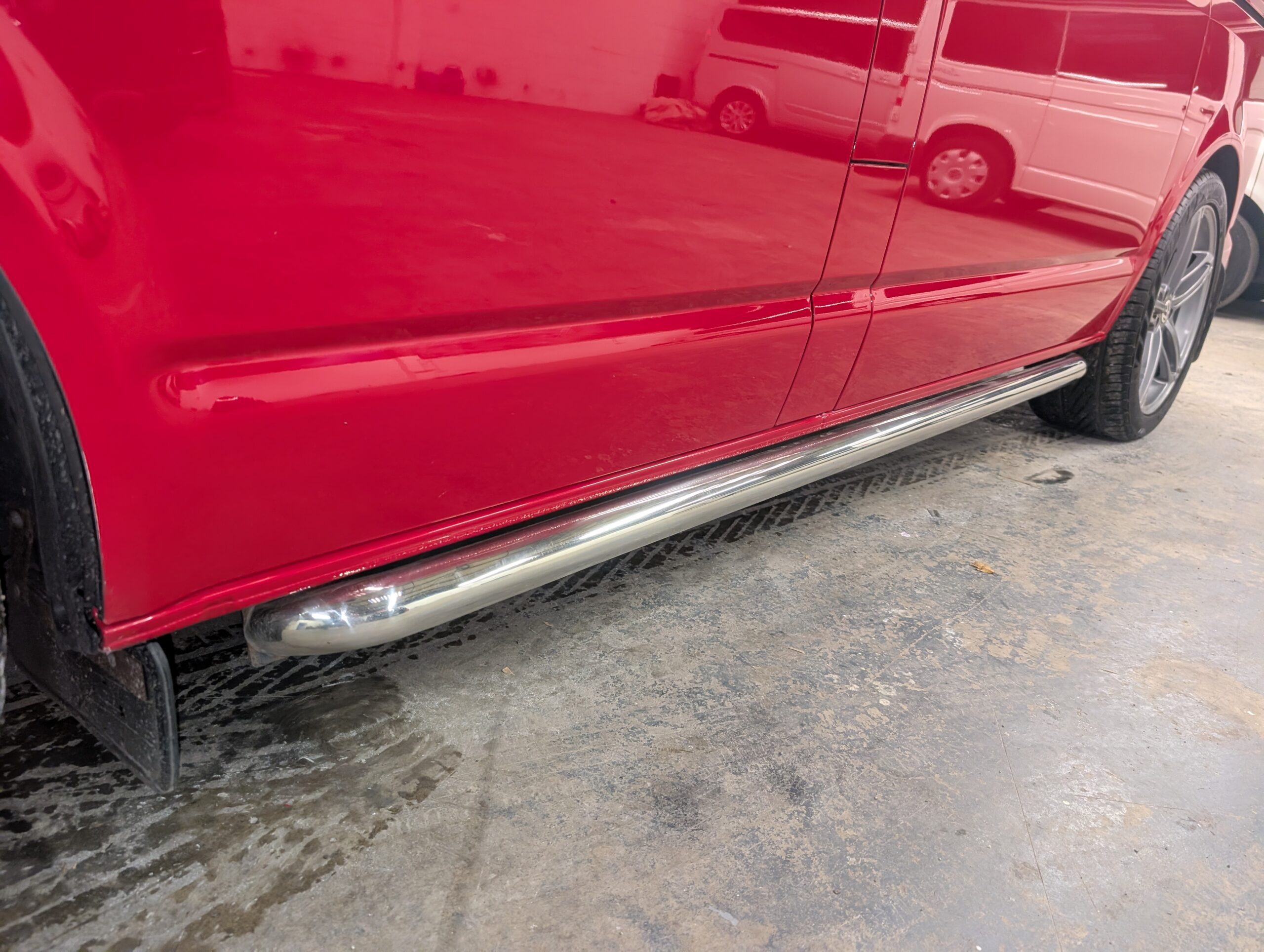 It looks absolutely stunning in bright red with 20″ alloy wheels and chrome sidebars