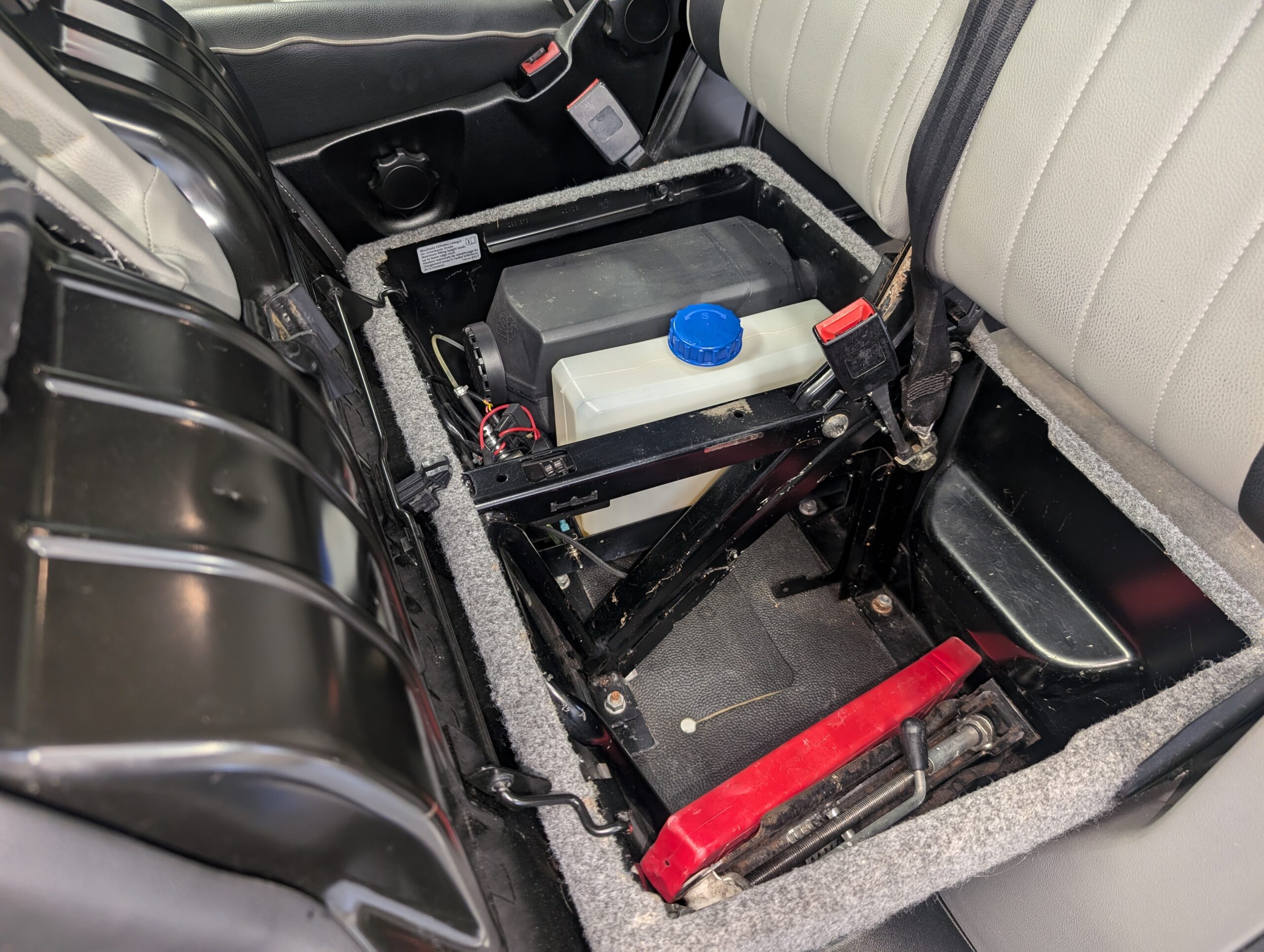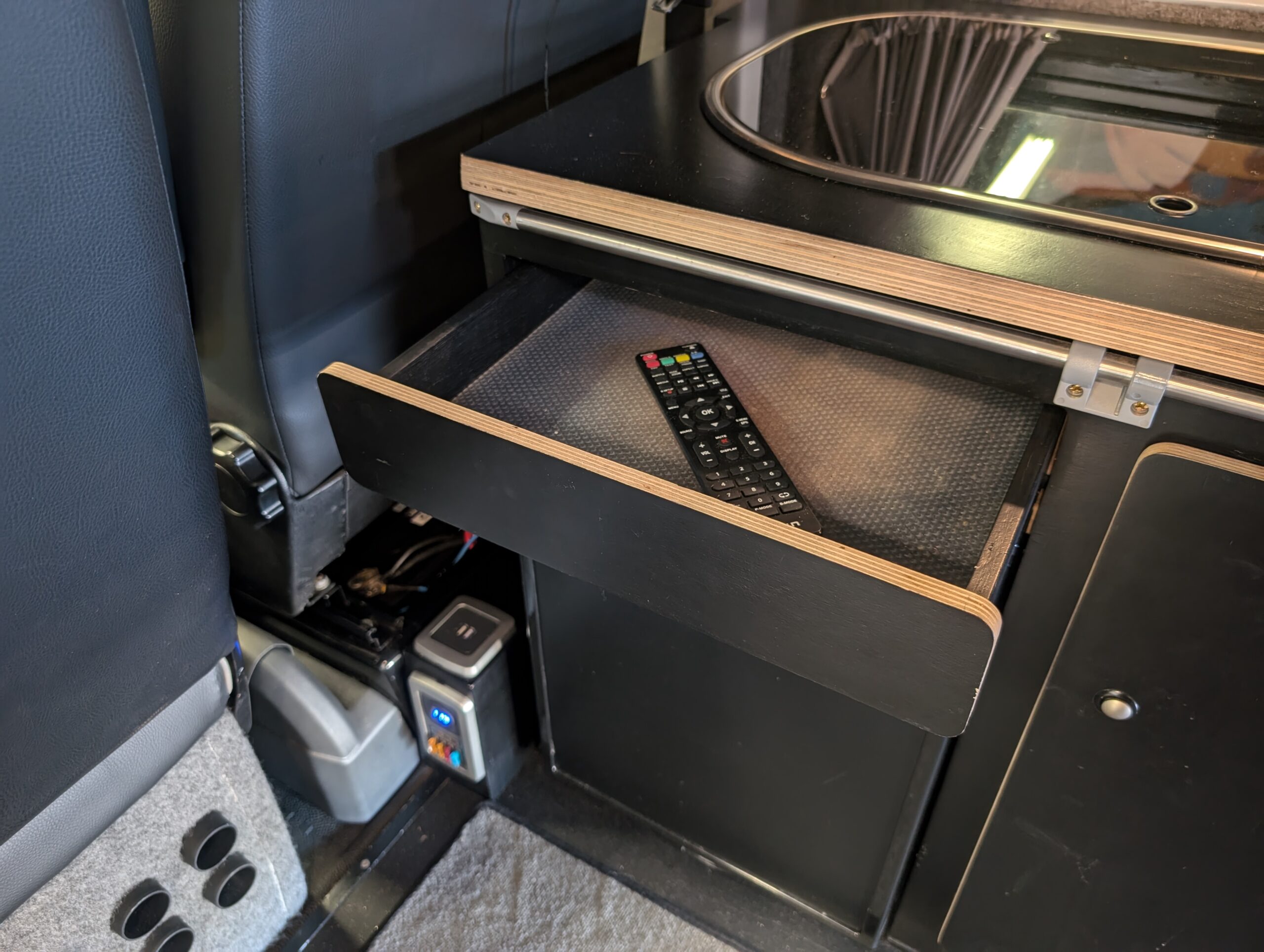 Behind the front drivers seat is a cabinet/pod that has the following;